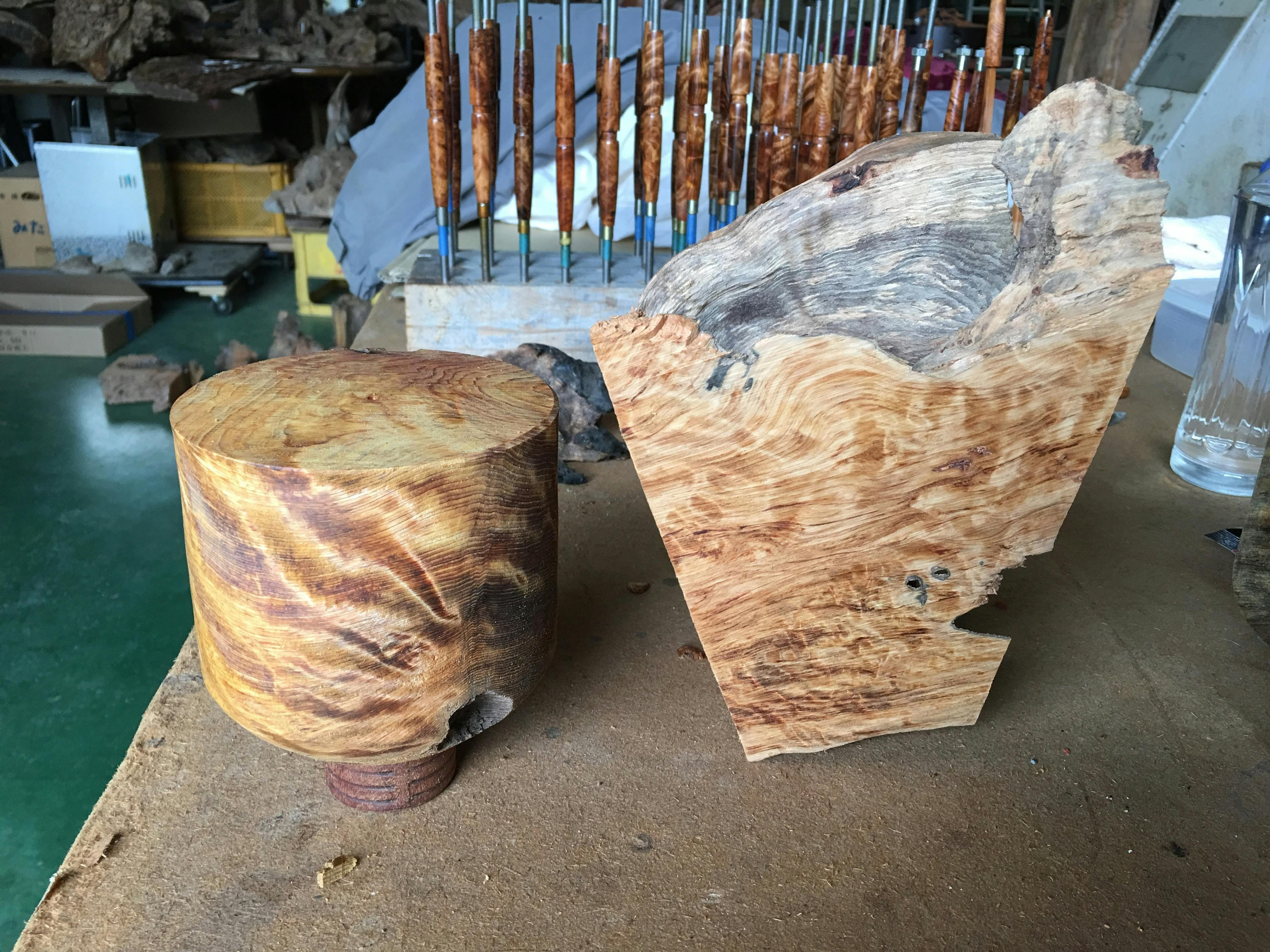 1年前から世界の珍しい木を木工旋盤(ろくろ)で削りだし