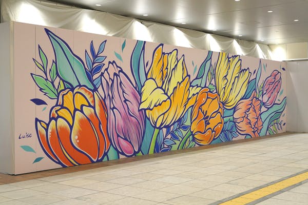 Luise Onoさんによるチューリップのミューラルアート(壁画)の写真を使用したデザインになります。