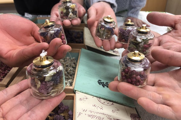 まちごと美術館CotoCotoの肥田野さん、植物アート作家のTOMIZOUさんの協力の元、新潟市江南区の地域活動支援センター「1UP」に伺い、ハンディキャップを持った若者6名と返礼品のドライフラワーを使ったランプの制作を行ってきました。
