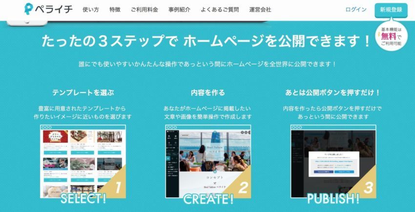 「誰でも・素早く・カンタンにホームページがつくれる」無料ホームぺ―ジ作成サービスです。