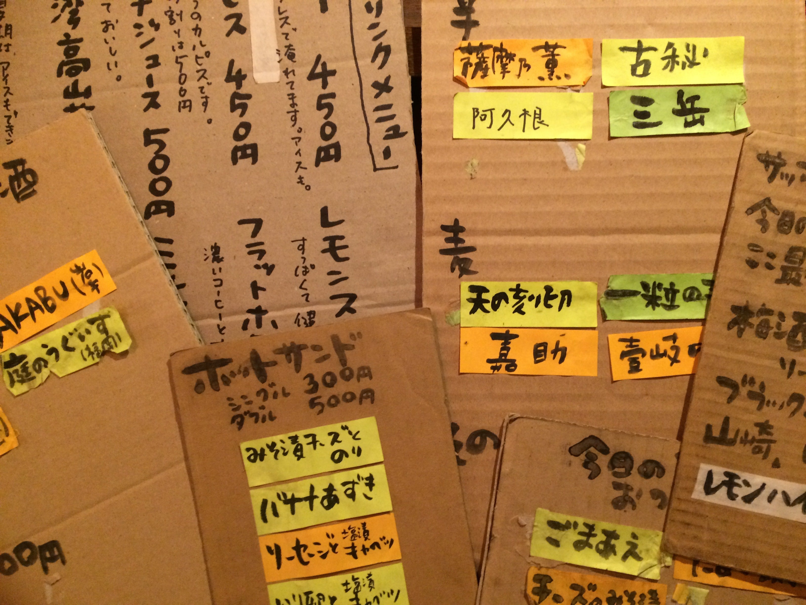 飲み物メニュー:ビール、日本酒、焼酎、ハイボール、レモンサワー、コーヒーなど
