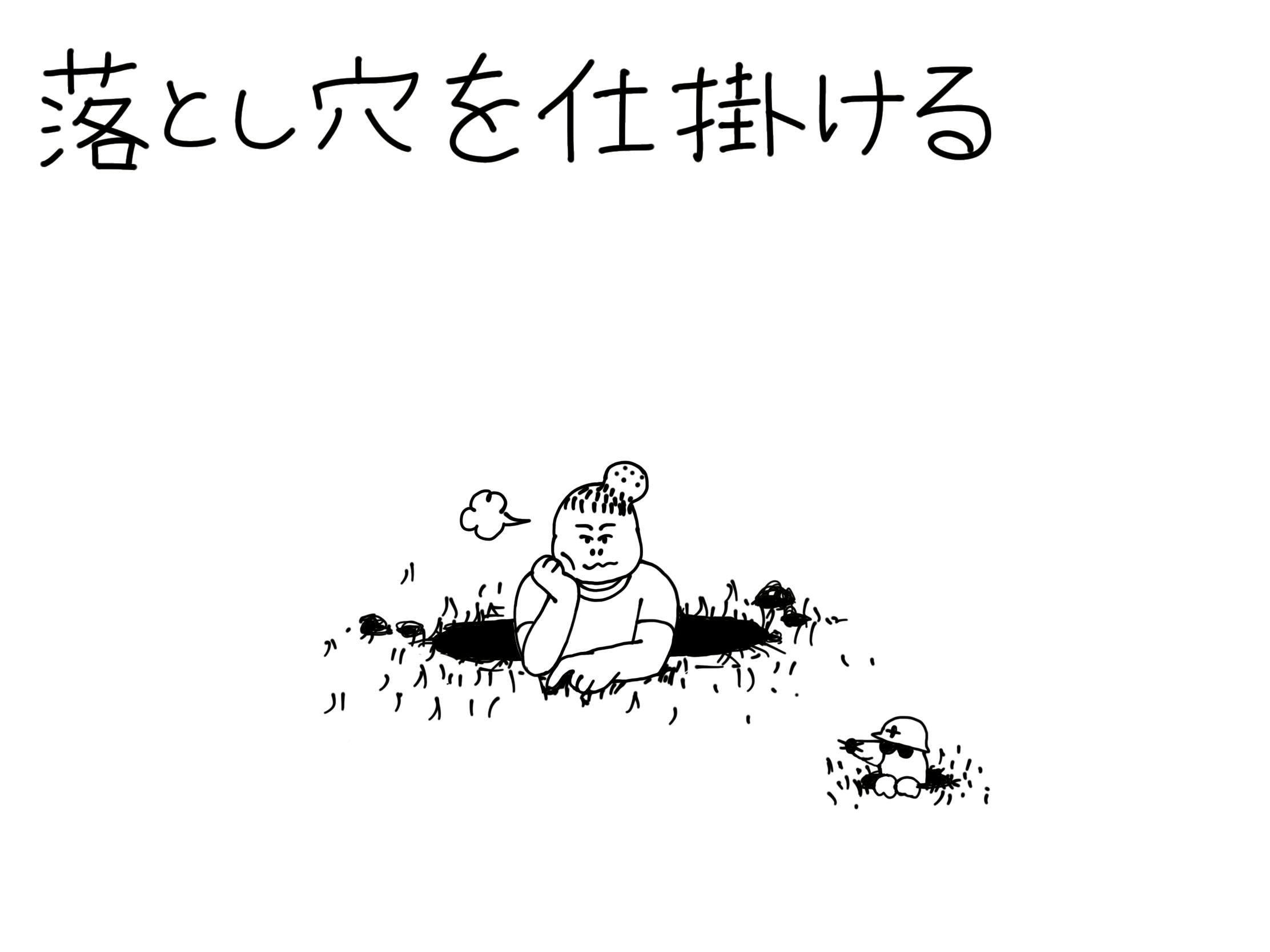 砂浜や校舎の裏手、湿った空き地など、土を掘りやすいロケーションは限られます。しかも、こっそりと採掘して、木の葉や枝、砂や段ボールで巧みに偽装した上で標的を呼び寄せて罠に誘導しなければならない。一連のデリケートな工作が必要なレベルの高いミッションで、成功率は低く、危険も伴うので要注意。