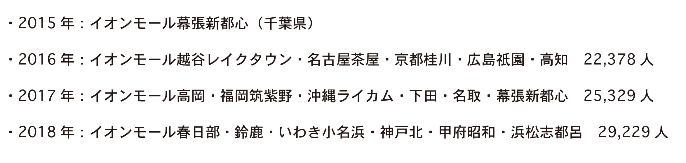 2015年〜2018年に、全国のイオンモールにて「ギリ展」を開催しました。4年間で約7万5千人を超えるみなさまにご来場いただきました。