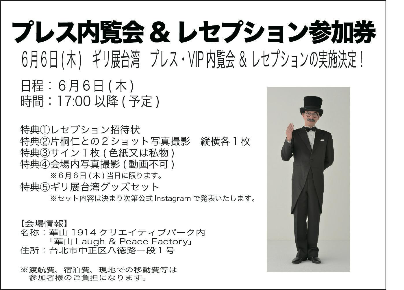 ギリ展開催に先駆けて、いち早くギリ展台湾を楽しんでいただける内覧会に参加できる券をご用意させていただけることになりました。