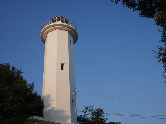 三崎山と呼ばれる小さな山のてっぺんに、美しい白い灯台があります。一晩中、沖をとおる船に向けて明るい光を投げています。
