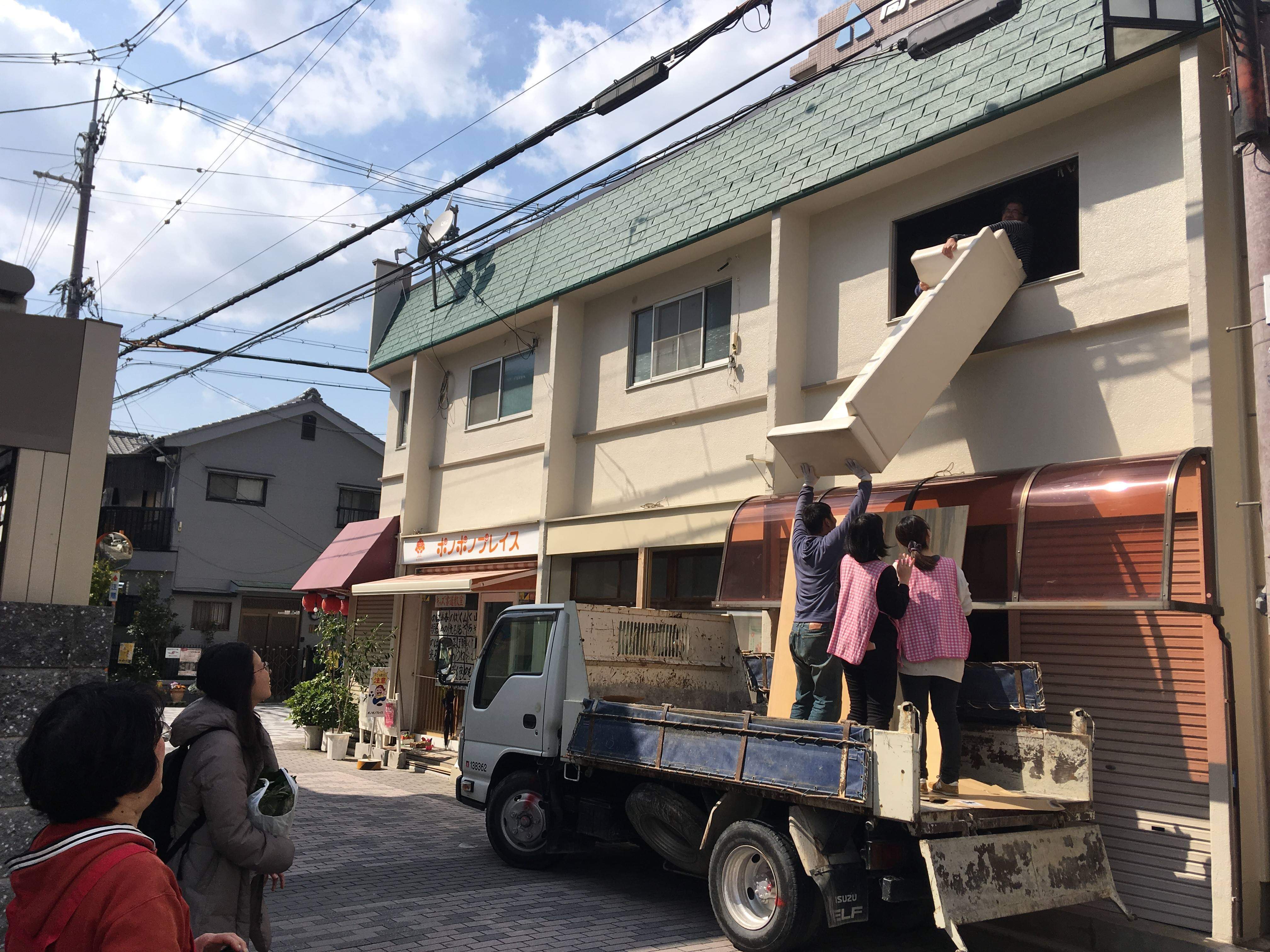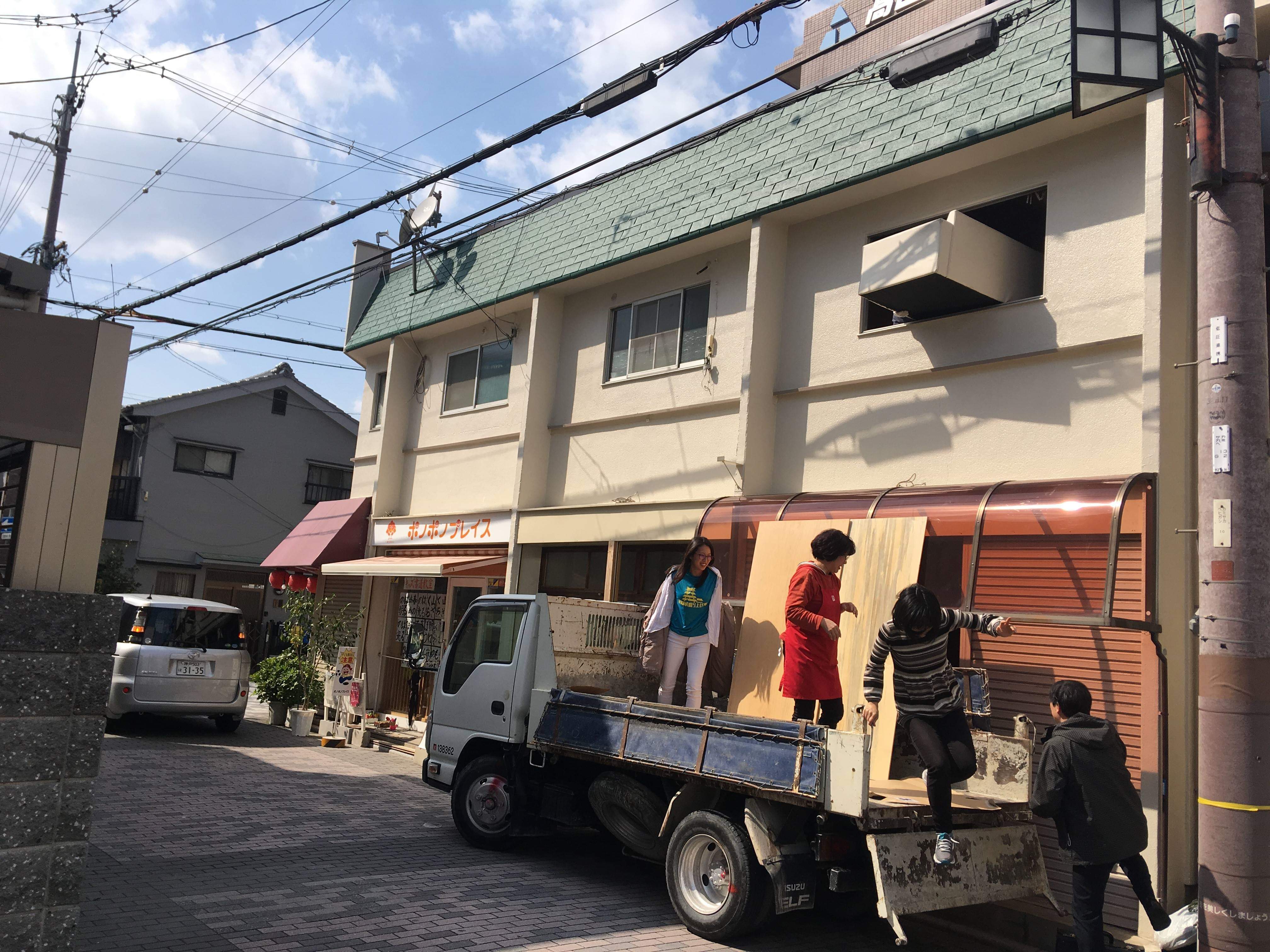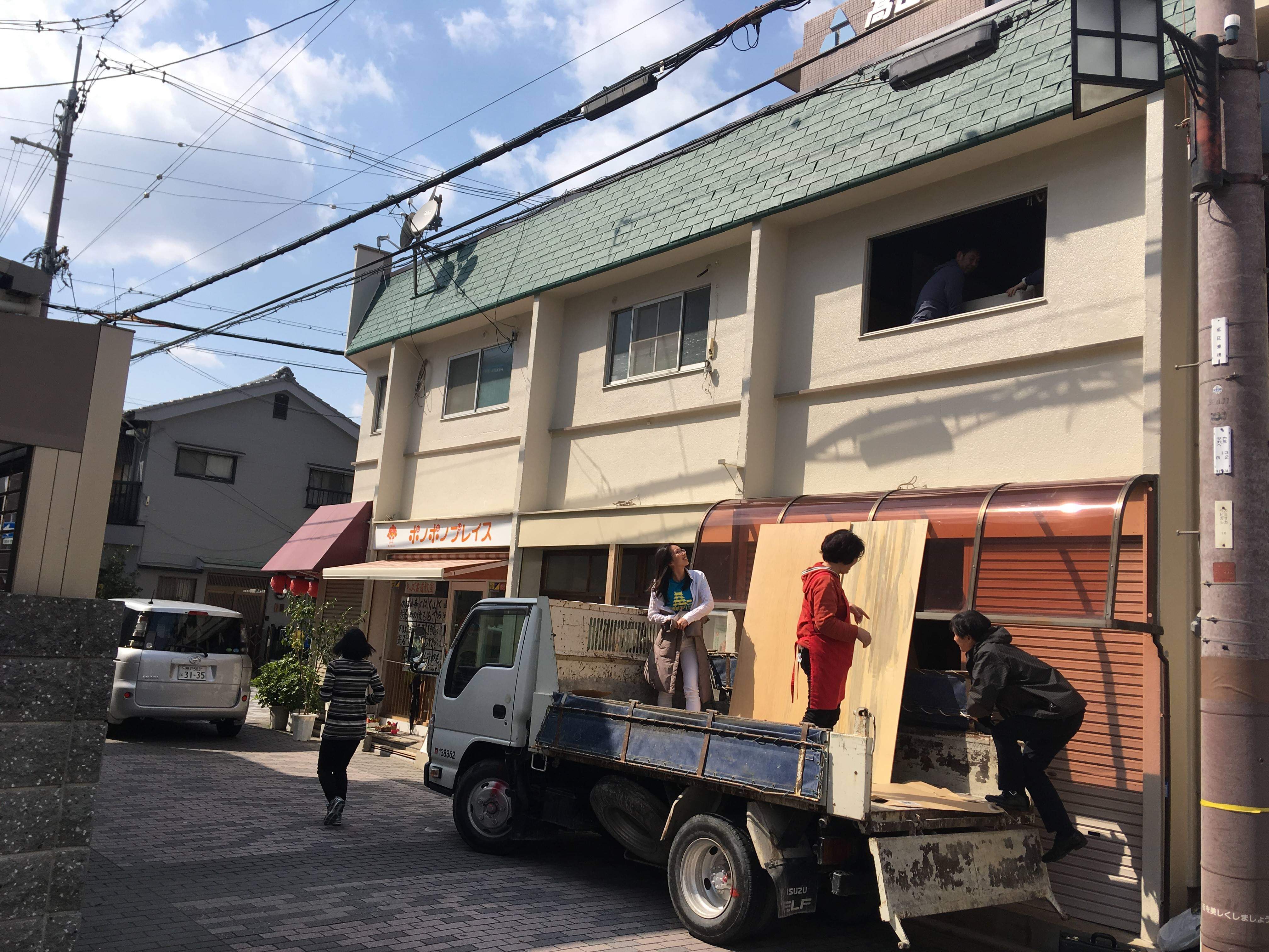 搬入だけでしたが、トラックの持ち主Junkman Garageのオーナーがなんと運ぶと言ってもらい、トラックの荷台か2階へ。