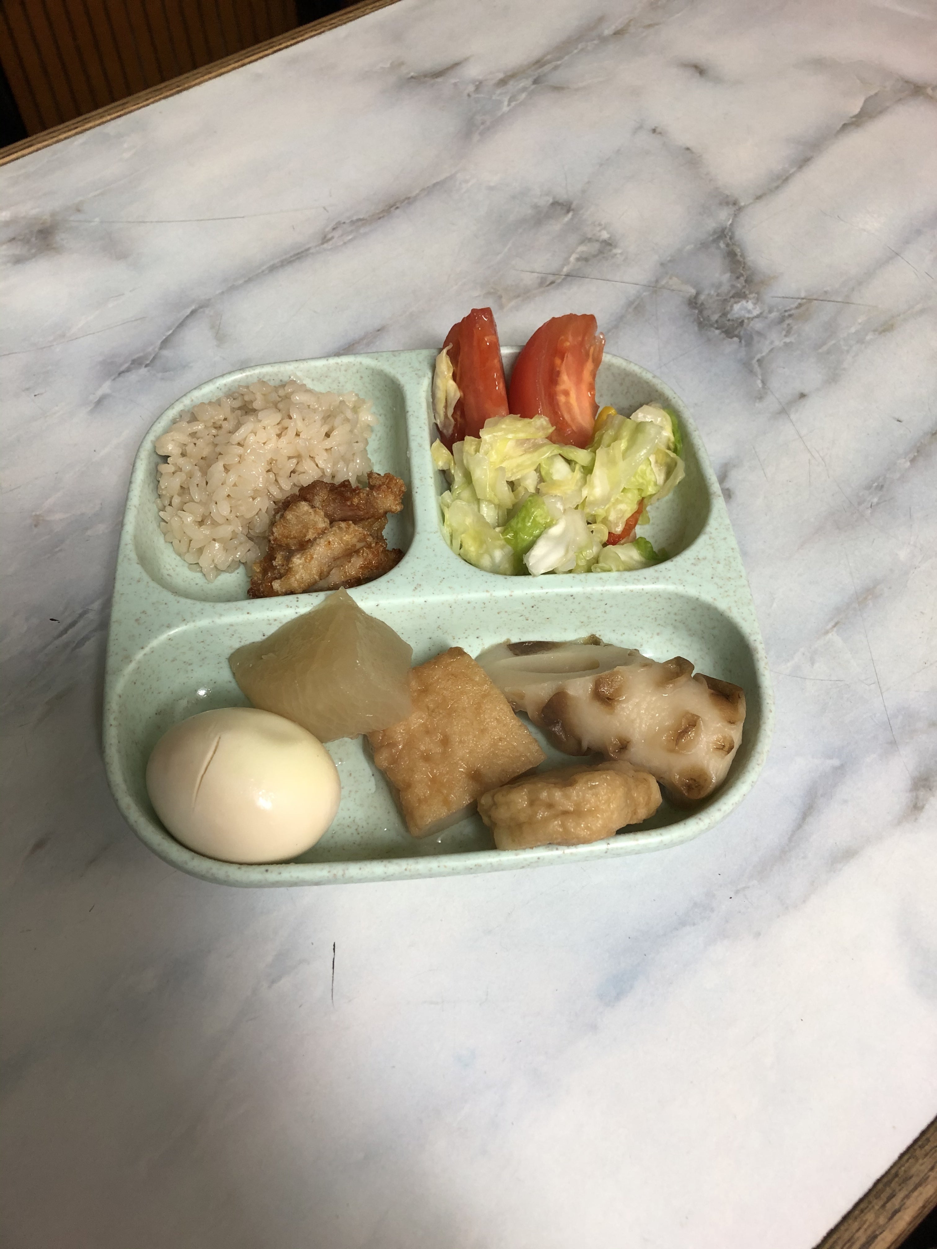 本日の子ども食堂メニューおでんに茶飯と定番の鳥の唐揚げキャベツの酢のもにトマトで楽しく食事寒いのでみんなよく食べてくれました。茶飯のおかわりをたくさんしてくれた子どももいて作りがいいありました。