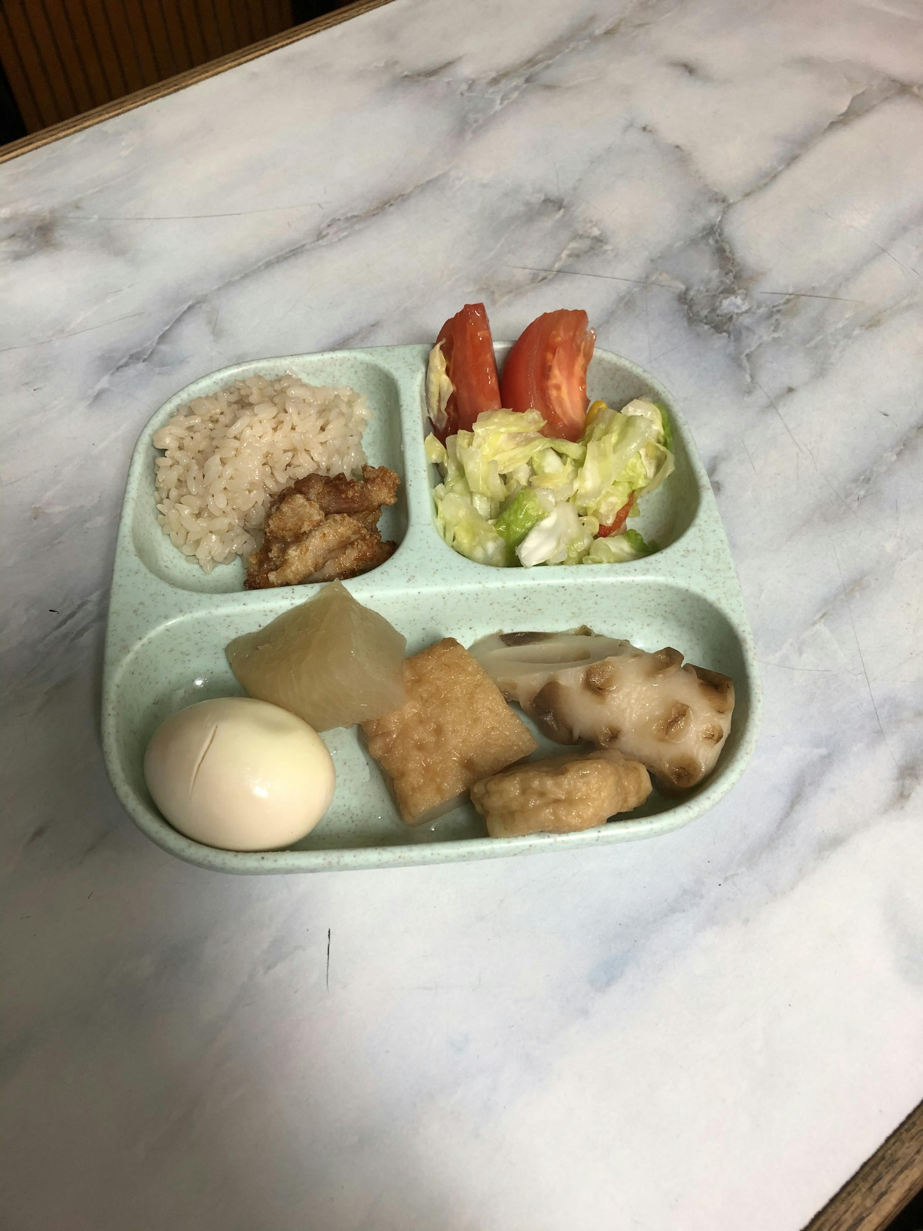 おでんに茶飯と定番の鳥の唐揚げ