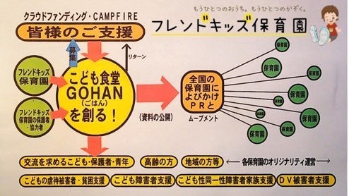 フレンドキッズ保育園は開所から今年で10年になります。保育園が「子ども食堂・居場所創り」の運営を行うケースは少なく、非常にめずらしい事です。私達は乳幼児の「深刻事故の防止とそのシステム開発、子育て保護者支援」に特に力を入れてまいりました。これから始める「子ども食堂・居場所創り」の運営の中で、地域の皆さんの気持ちと事実に接しながら、少しでも子ども達の健やかな子育ちと幸せな家庭つくりにお役に立ちたいと考えています。また、私達の考えに少しでも興味をお持ちの全国の保育園に強く呼びかける計画も立てております。
