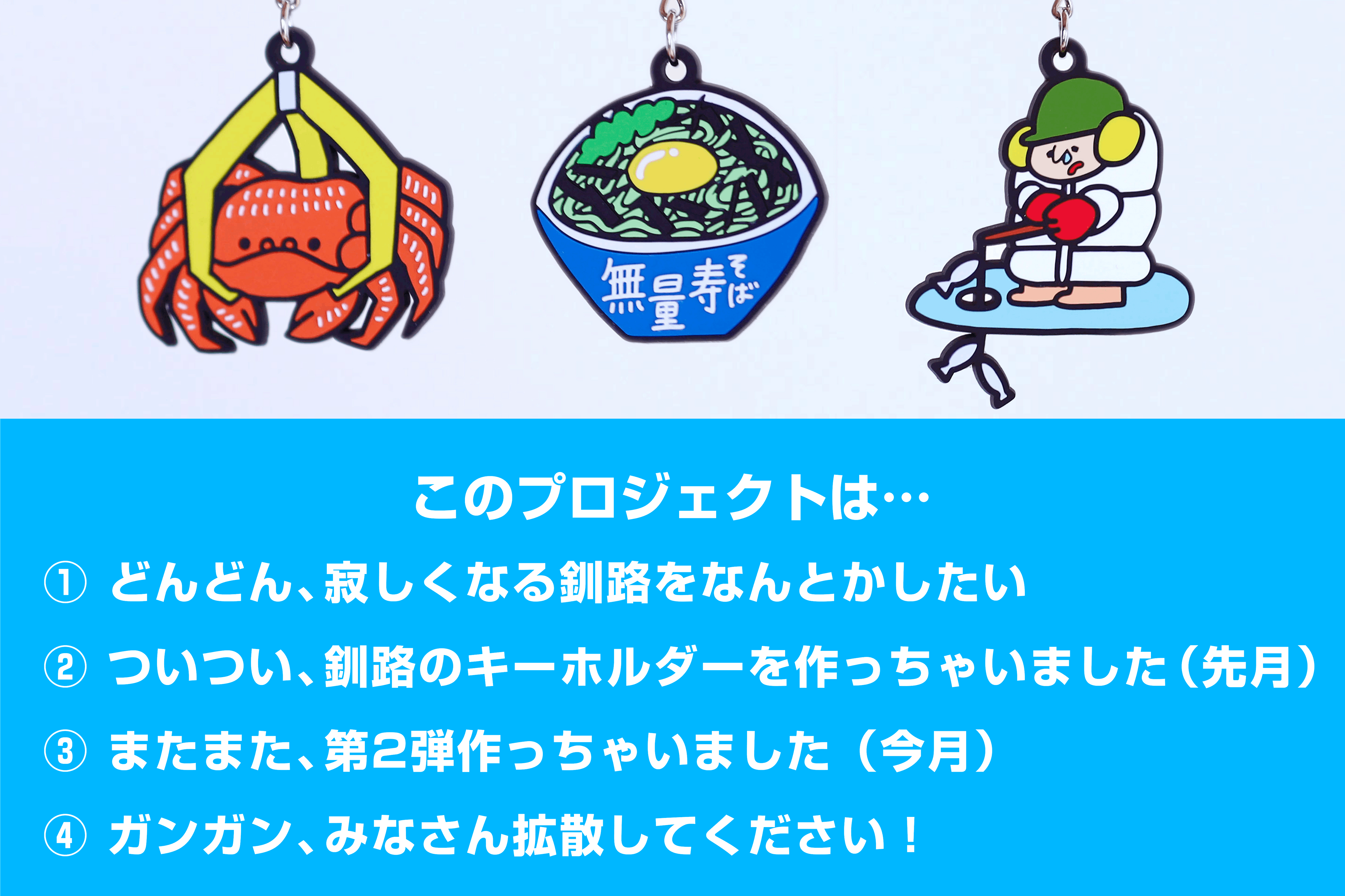 そしてわたしたち「クスろ」は、2019年2月から「おせっかいすぎてごめんなさい!勝手に釧路の新土産を作っちゃいました!」というプロジェクトを実施しており、こんなゆるいキーホルダーを制作しました。