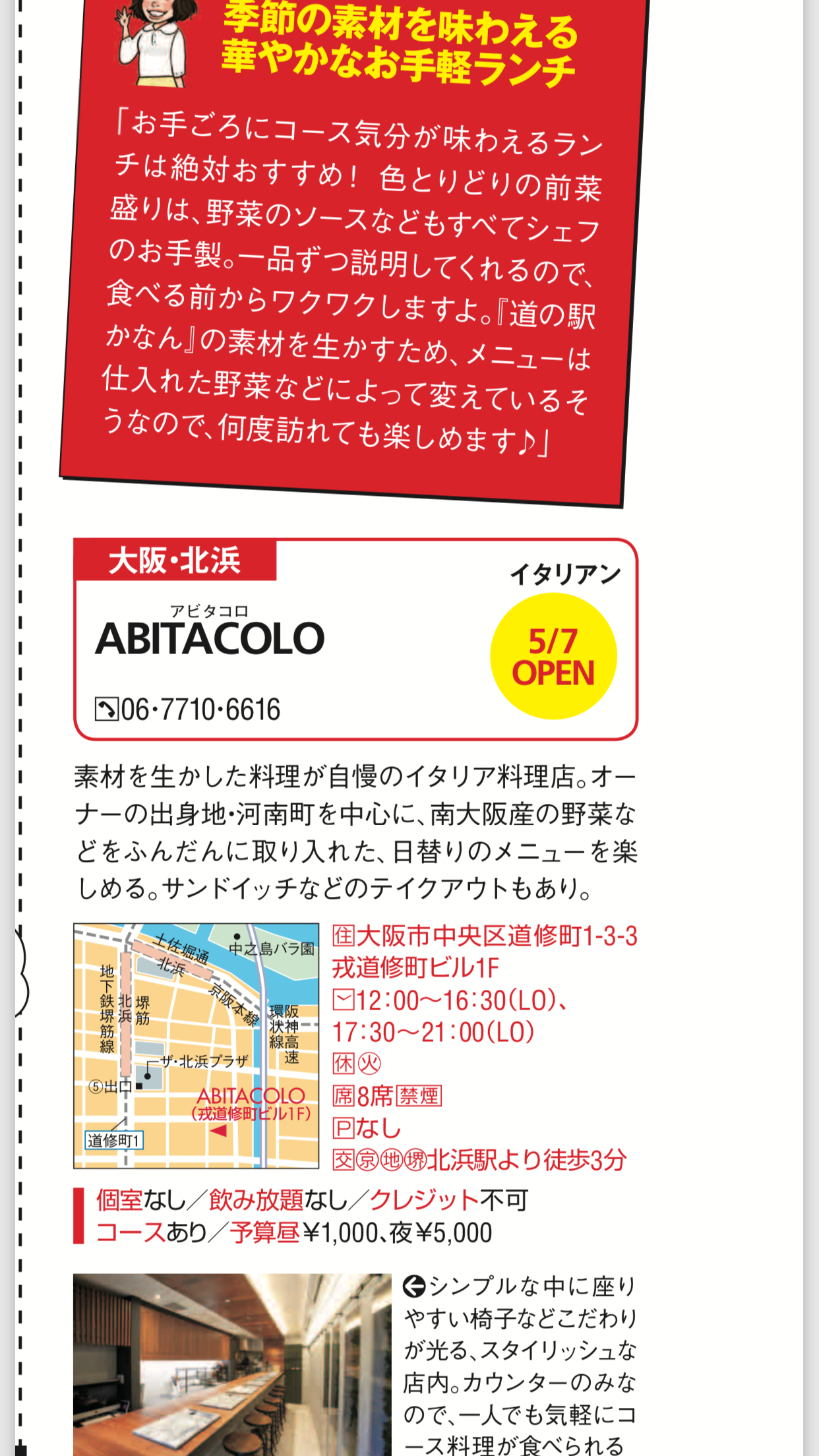 オープンから半年で雑誌(関西ウォーカー)の記事にして頂きました。