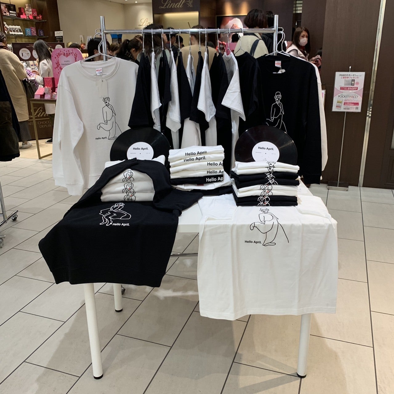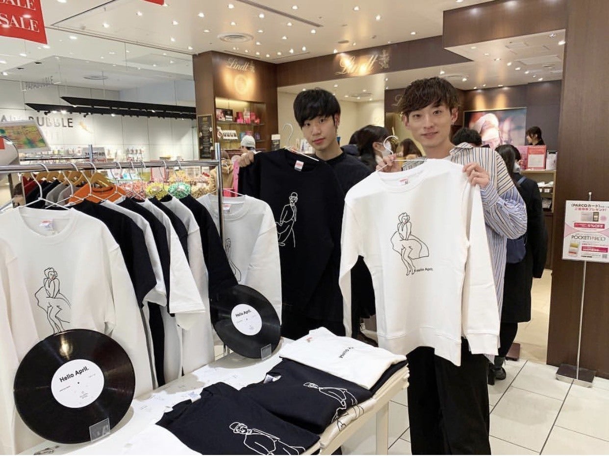 1月22日〜31日にポップアップという形でHelloAprilをオープンし、Tシャツ、ロンT、トレーナーを作成し、仙台PARCO2にてラック一つとテーブル一つという小さいスペースでしたが販売しました。