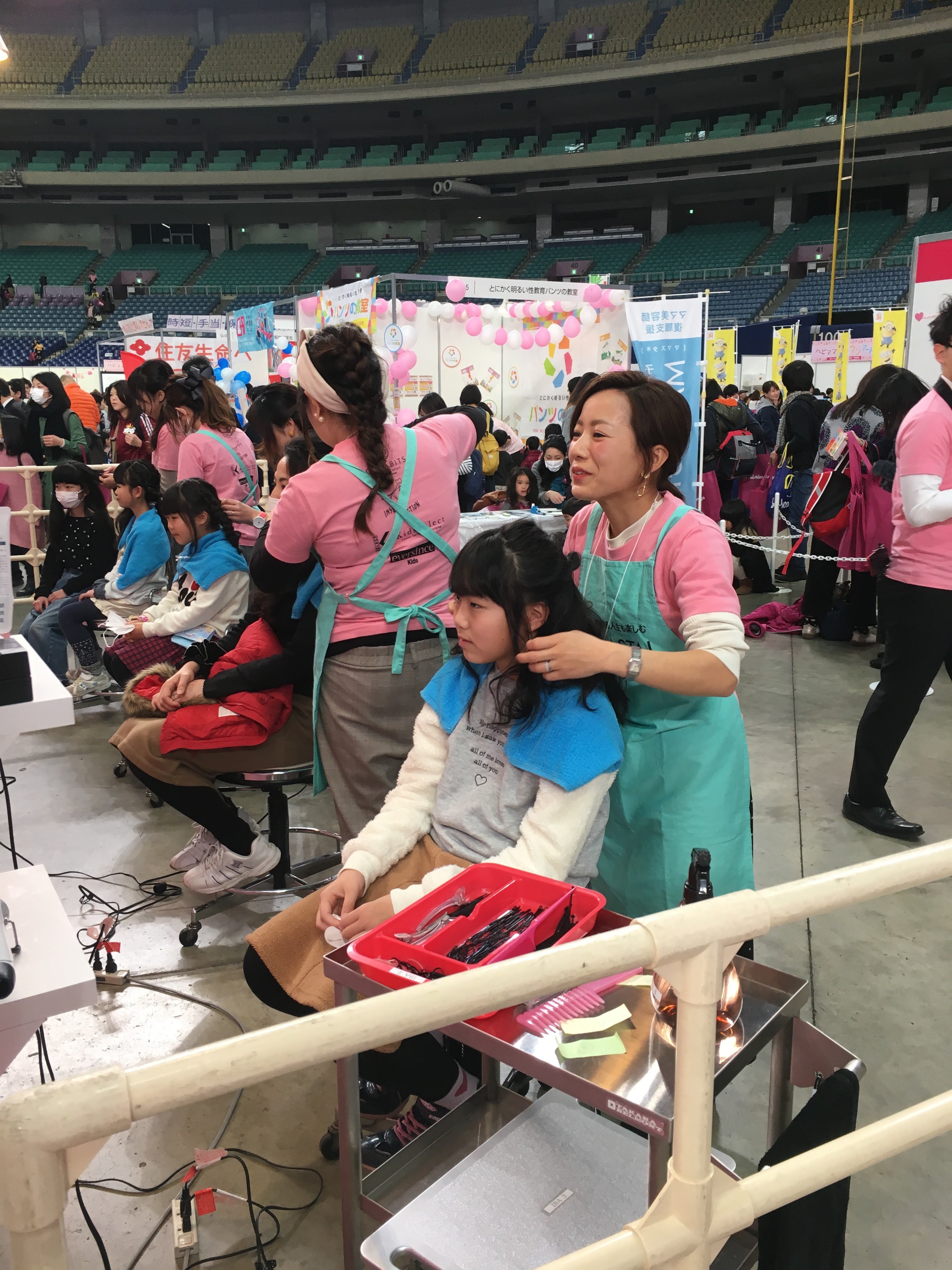 2019年2月22日〜24日の3日間、ママ美容師がヘアアレンジで参加しました!3人のお子さんがいるママ美容師さん。練習にも来てくださり、2日間活躍してくれました!とっても楽しい!早く復帰したくなりました!とおっしゃってくださいました。