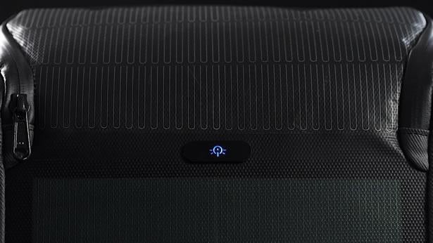 ソーラー発電時はバックパック上部のLEDが青く点灯。発電できるかどうかすぐに分かります。