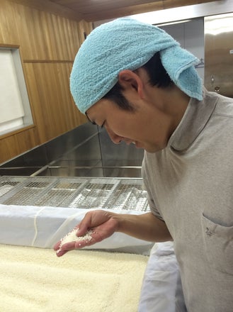 皆様大変お待たせいたしました! 遂に『二才の醸』のラベルが出来上がりました!!! 今回は日本酒らしさを失わずに、かつ何か挑戦的な要素を取り入れたいと思い、このようなラベルに仕上げました。 幾何学模様の上に浮かび上がる『二才の醸』の文字。一見かけ離れた要素のように見えますが、この文字と幾何学模様は強くシンクロしているのです。実は背景にある幾何学模様は『二才の醸』の文字を作る為に書いたガイド線、言わば設計図のようなものなのです。そのため、よく見ると線の角度や対角線の交点などが文字と連動しています。皆様のお手元に届いた際には、そのような仕掛けもご一緒に楽しんで頂けたら幸いです。 今回のプロジェクトではまだ出来てもいない、味も分からないお酒の為にたくさんの人が応援をしてくれました。そのような皆様の多くは、きっと僕たちが「20代の大吟醸」をつくり上げるまでのストーリーに共感してくださったのだと思っています。ならばラベルも、それが出来上がるまでのストーリーを内包したものにしたい。そう思い今回のラベルを作成しました。 また『二才の醸』はあえて「青二才」と謳わないことで、若いながらも堂々と酒造りをしようという想いを込めました。しかし、「青」二才からの脱却とは言っても、いきなり「赤」くなったり「黄色」くなったりすることはできません。きっと僕たちは元の「青」をより深めていくことで次のステップに進む事ができるのではないかと思います。そのような想いから、ラベルの中心に向かって青が深まっていくような配色にしました。 その他にも「実は全体の構図が葛飾北斎の『富嶽三十六景』の中の絵と同じ構図になっている」とか「設計図のガイドの作り方も日本古来の宗教画や人物画に用いられた手法を用いている」など、ラベルに込めた仕掛けや想いは語り尽くせません! でも「そんなのどうだっていいから早く飲もう!」みたいになってくれるのが実は一番嬉しかったりもします。 ラベルも完成し、仕込みも佳境に差し掛かってきております。 皆様と乾杯できる日を心より楽しみにしております。 引き続き、「20代の大吟醸プロジェクト」を宜しくお願い致します。 高山