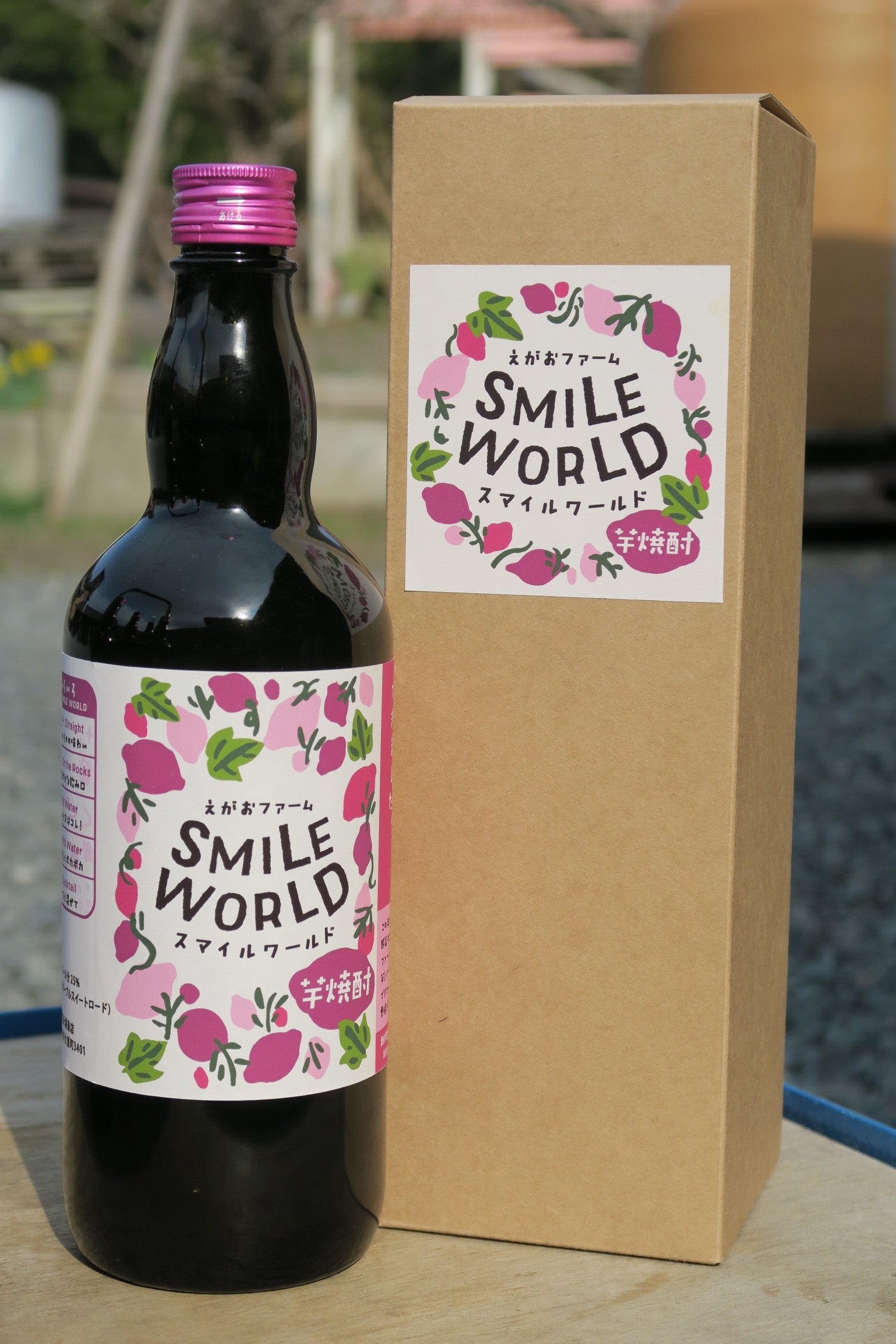 こんにちは。畑と食から笑顔と健康をお届けするえがおファーム農縁長・きよです。えがおファーム産むらさき芋を使用したオーガニック芋焼酎「SMILE WORLD」を作るクラウドファンディングを実施中です。早速、ご質問をいただきました。「なぜ、今回は原酒で焼酎を作るんですか?」仕込みはじめの焼酎むらさき芋なので、蒸留するまでは紫色です。原酒だとアルコール度数が高いので、原材料のうま味や甘味がギュッと凝縮されている為、焼酎本来の味を強く感じることができるからです。一般の焼酎は原酒をアルコール度数25度(もしくは20度)まで仕込み水等で薄めます。前回製造した「SMILE WORLD」も仕込み水で加水をして、アルコール度数を調整しています。(「SMILE WORLD」はアルコール度数25度)すなわち、今回の原酒はこれまでの2本分が1本に凝縮されている形になります。割る際のお湯やお水の量を増やせば、本来の味を感じつつ、一本でこれまでの約2倍楽しめますよ!蒸留直後の芋焼酎こちらを半年間寝かします焼酎を製造する剛烈富永酒造店の杜氏さんが前回製造した焼酎を試飲してひと言。「今まで芋焼酎の製造を数々してきたけど、ここまでフルーティーで甘くてすっきりした焼酎はないよ!」と太鼓判を押していただきました。アルコール度数25度より本来の味を楽しんでもらいたい!この想いが原酒でのご提供を決めた最大の理由です。本来の味を楽しみつつ、楽しみは25度の2本分です。(実際に計算上でも同じ材料でも出来上がる数は約半分の本数です)ぜひ、1本で2本分楽しめる「原酒 SMILE WORLD」をお楽しみください!