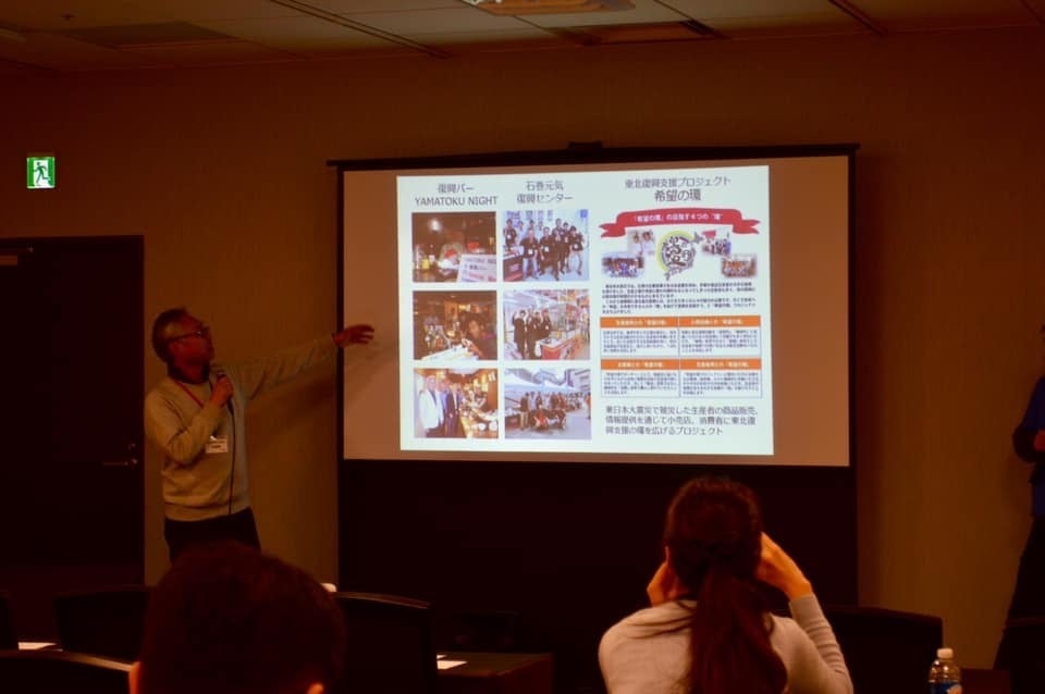 今月の17日(日)仙台市内で行われた「共創でヒットを生む食の地域ブランドの育て方 ~「石巻金華茶漬け」5万食ヒットの秘訣を探る」に於いて、商品開発部会のリーダーであり、今回の「石巻金華釜めし」の開発副責任者でもある山徳平塚水産(株)平塚社長が、石巻うまいもの株式会社の誕生から、復興へのこれまでの活動と、地域ブランドを開発しヒットさせた秘訣をお話させていただきました。