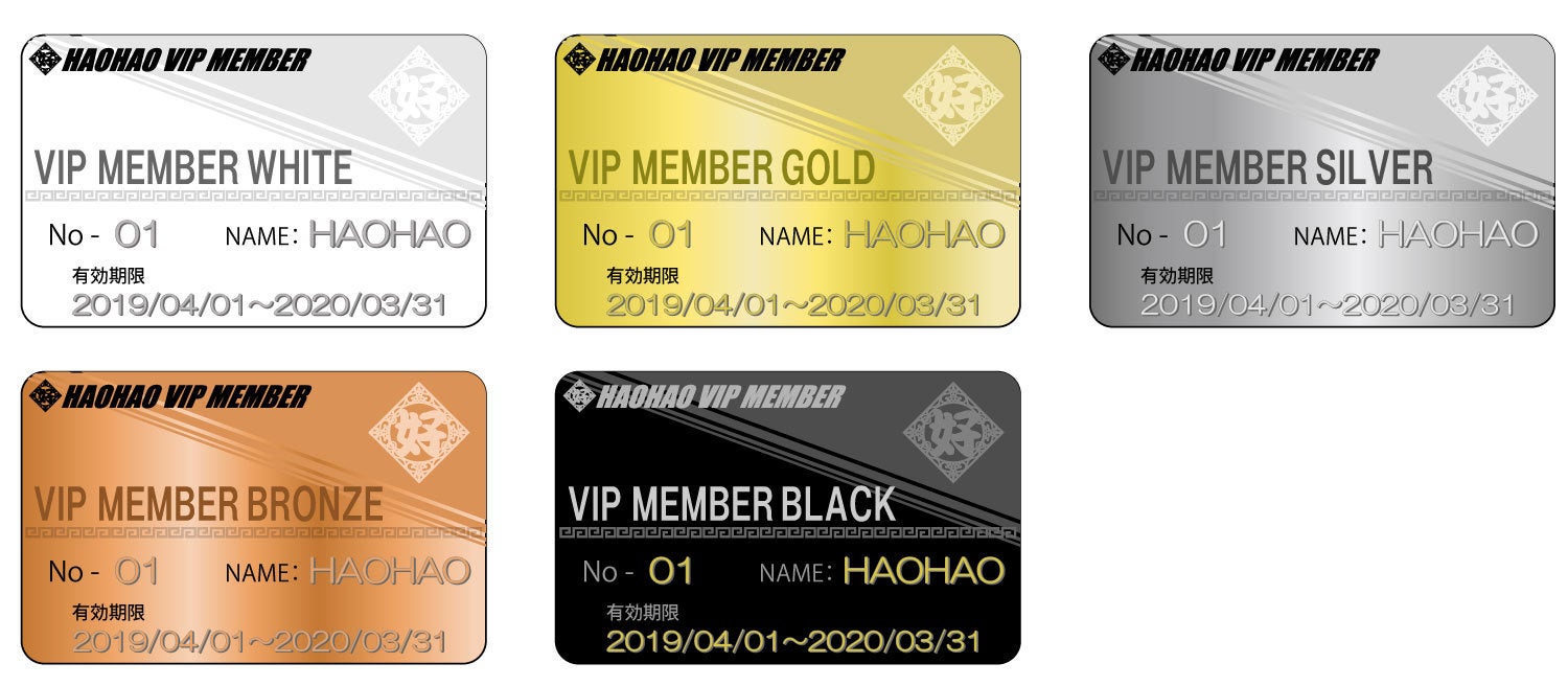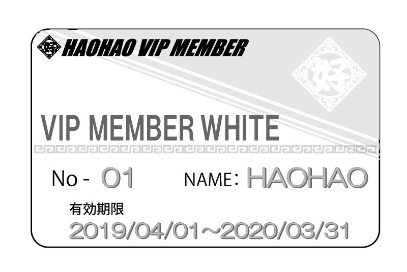 ・特製会員カード(ホワイト)2019年4月より2020年3月末までご来店の際に注文品に中華料理一品サービス(12回)