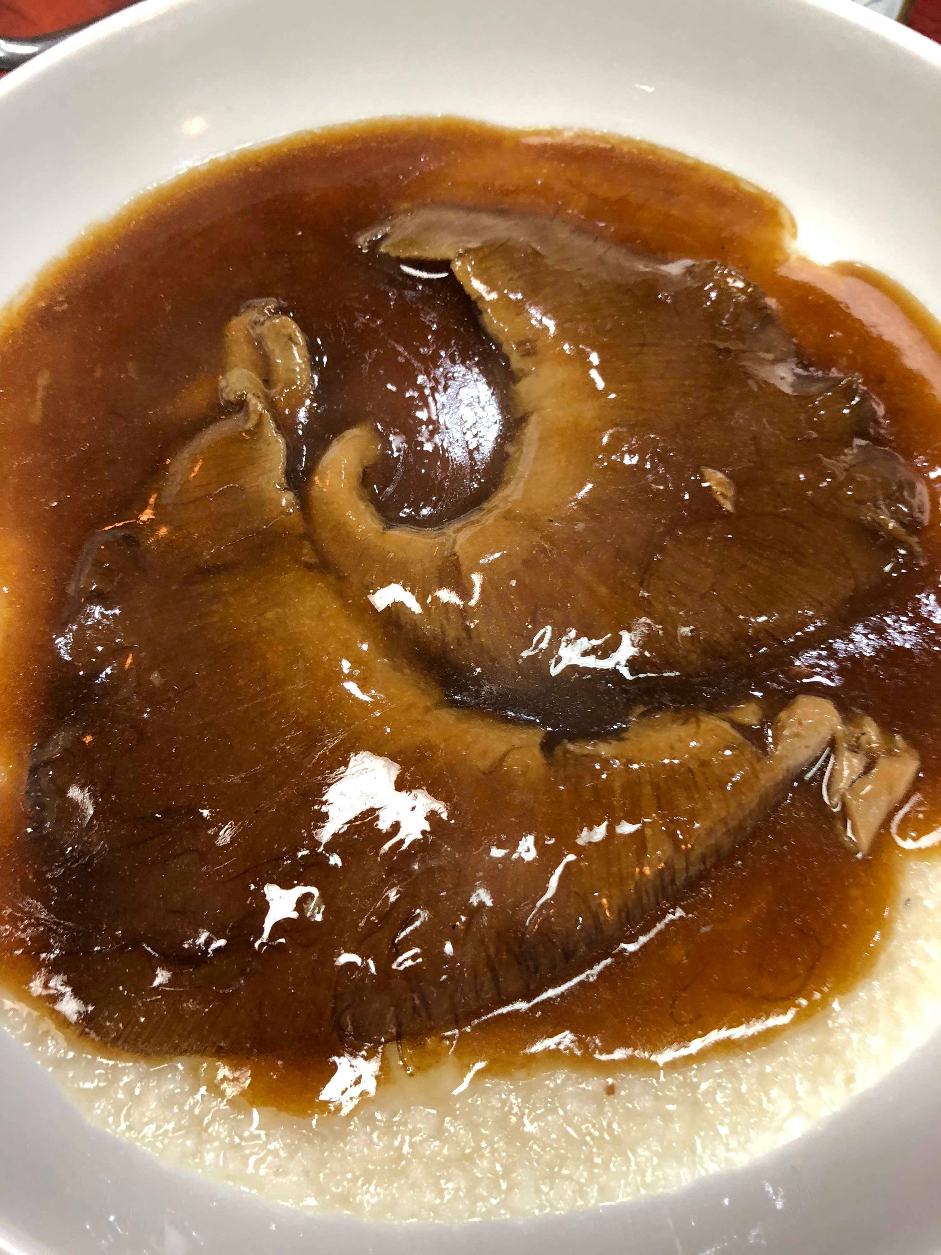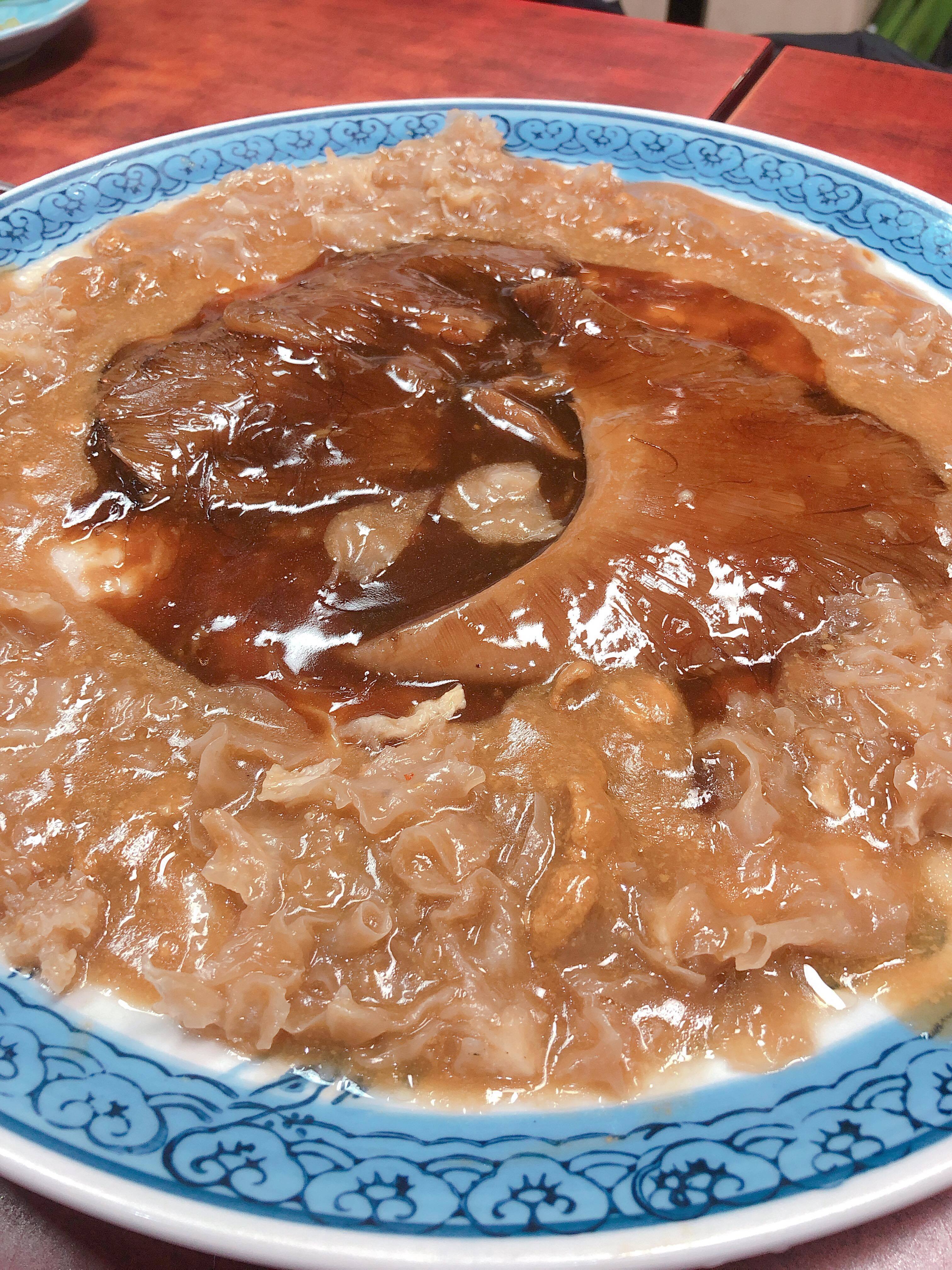 最高級な鮫の背びれの部分を濃厚なタレと金華ハム、上湯(シャンタン)で徹底的に煮込み、店オリジナルのオイスターソースでお出しします。