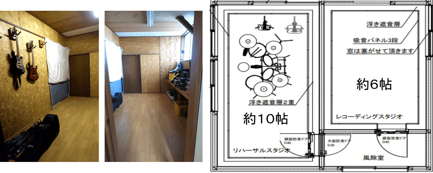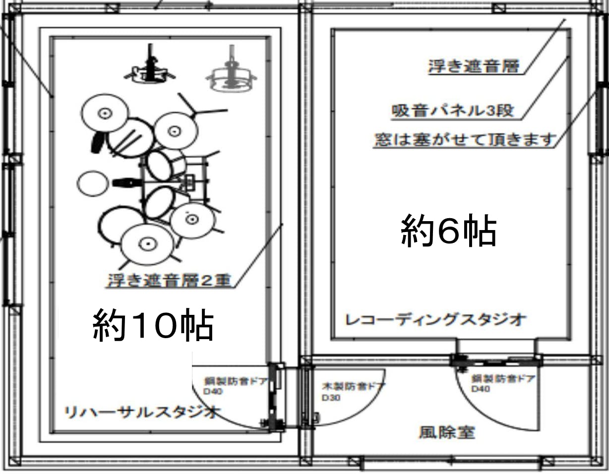 (完成見取り図 リハーサルスタジオを10帖、レコーディングスタジオを6帖を予定!)