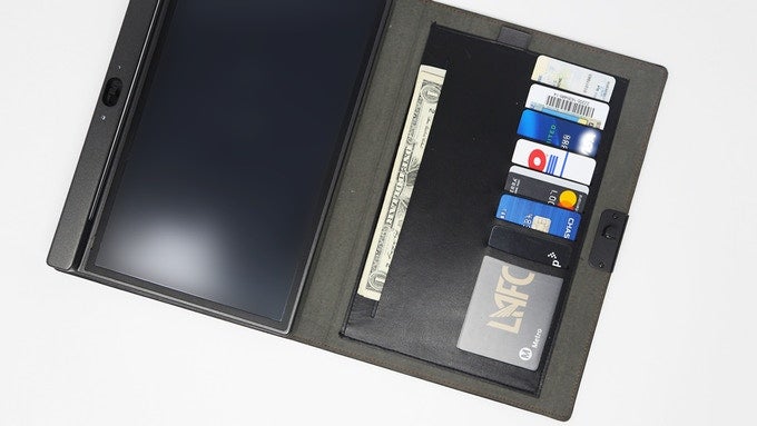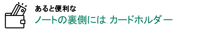 紙ノートの裏側にはカードホルダーと札入れが。