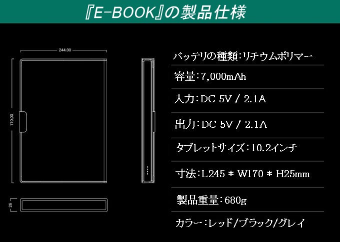 ■『E-BOOK』には7,000mAhのバッテリーを内蔵