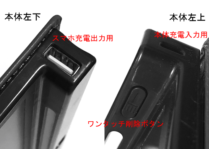 ■スマホ等充電用(本体左下):USBタイプA