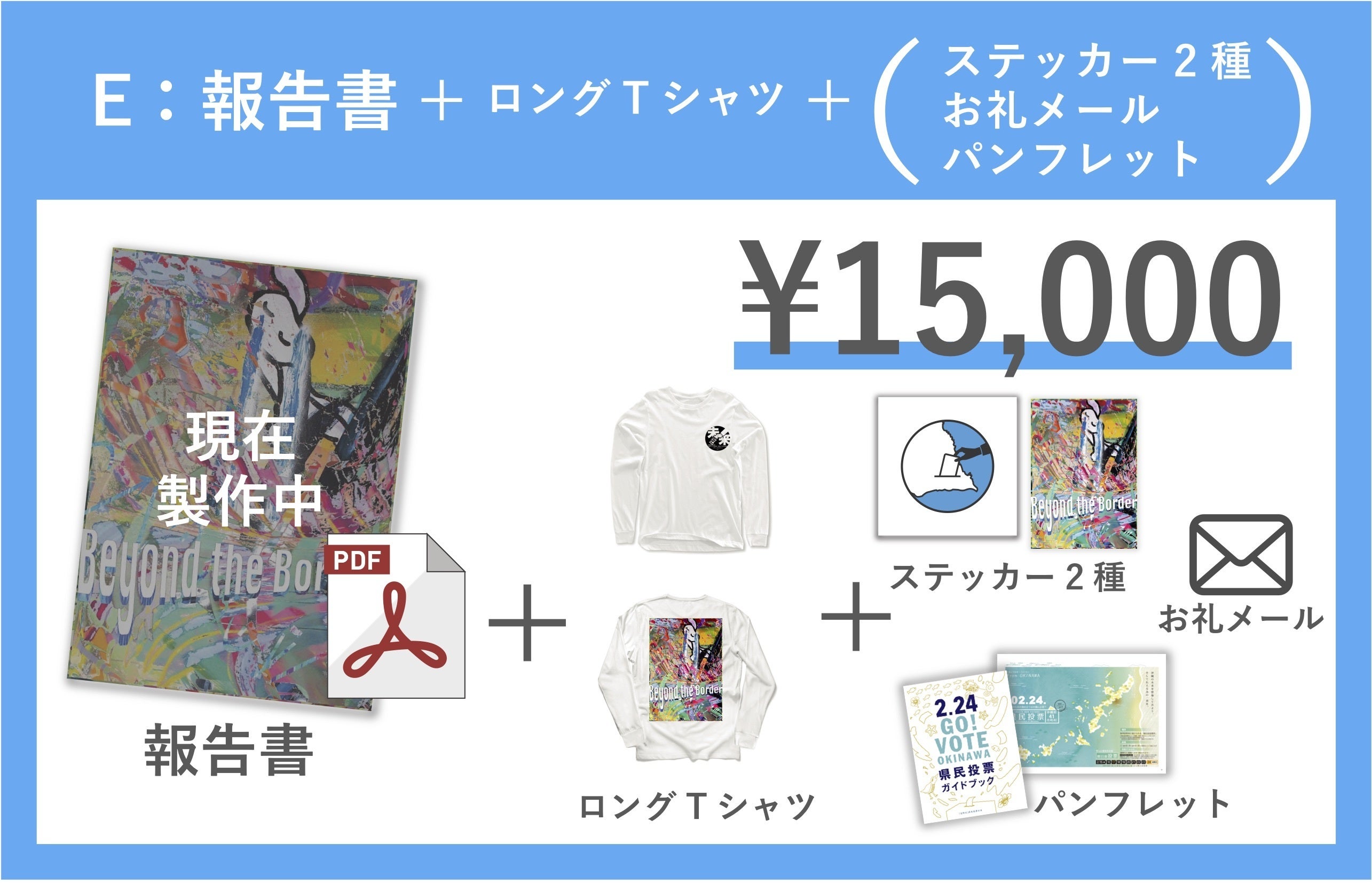 a. お礼メール b. 「辺野古」県民投票の会ステッカー c. 県民投票音楽祭ステッカー d. 県民投票ガイドブック e. ロングスリーブ Tシャツ f. 報告書