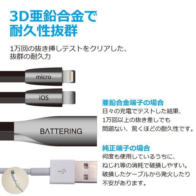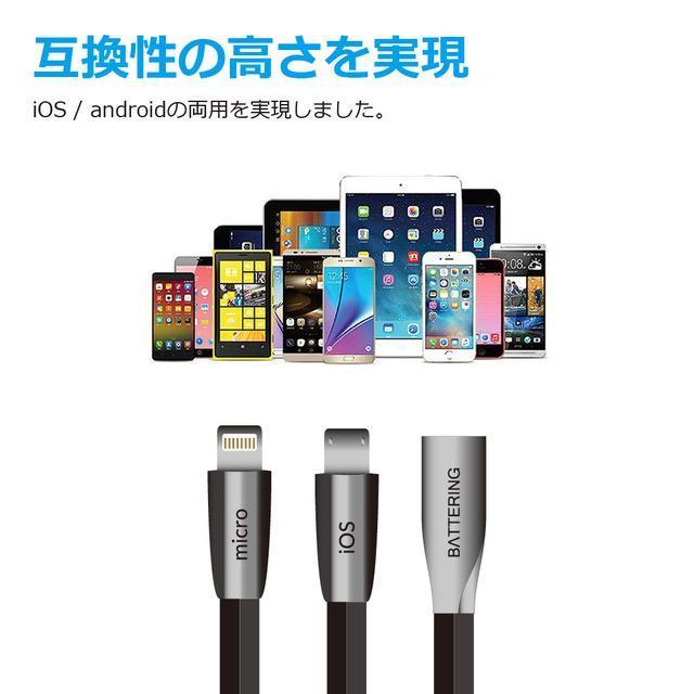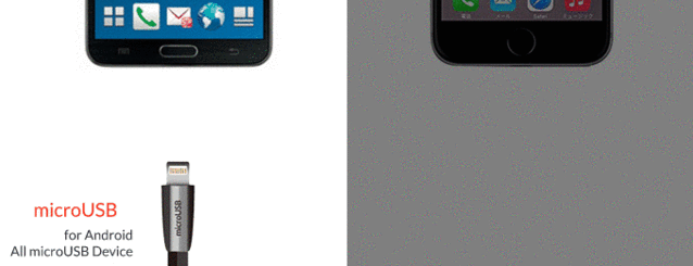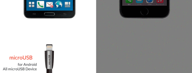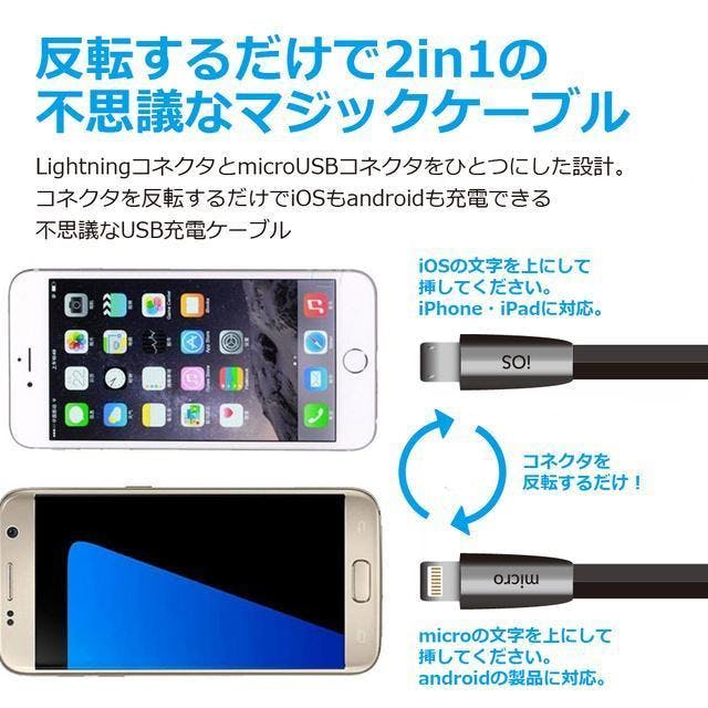 コネクタを変えずに反転するだけで、iOS端子(Lightning)にもandroid端子にも挿しこめる、今までの常識を覆す充電ケーブルです。