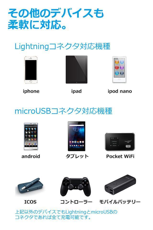 上記以外でもLightningやmicroUSB(microB)のコネクタであれば充電が可能です。