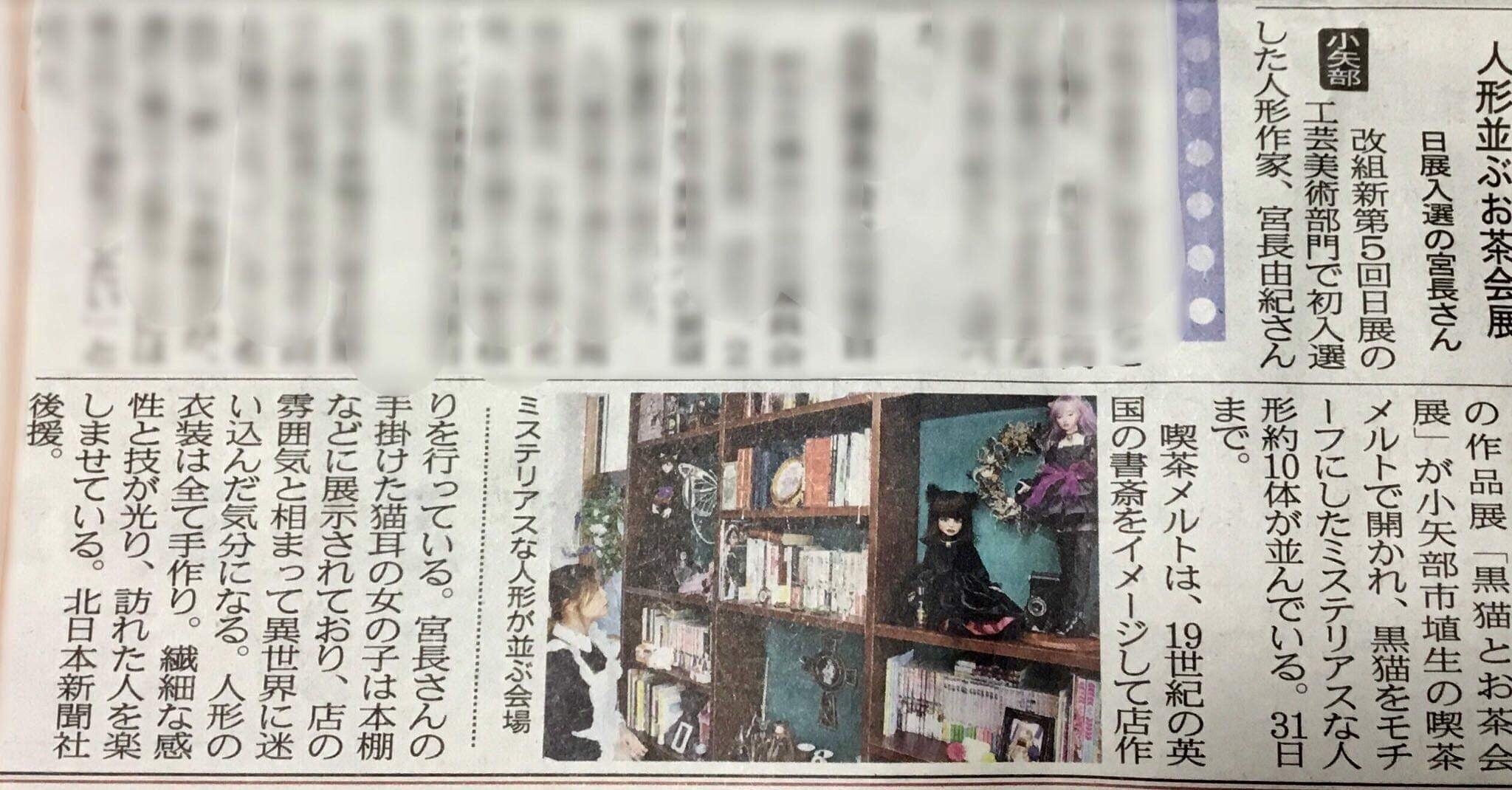 北日本新聞にて 店内での地元アーティストによる作品展示の様子を掲載していただきました。