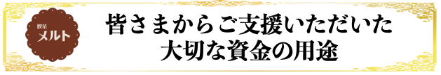 皆さまからご支援いただきました資金は、以下の目的のために大切に大切に活用させて頂きます。