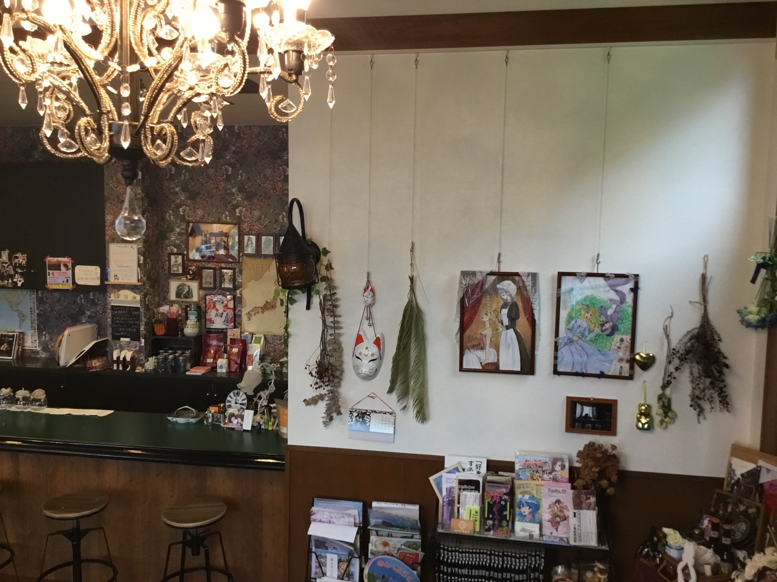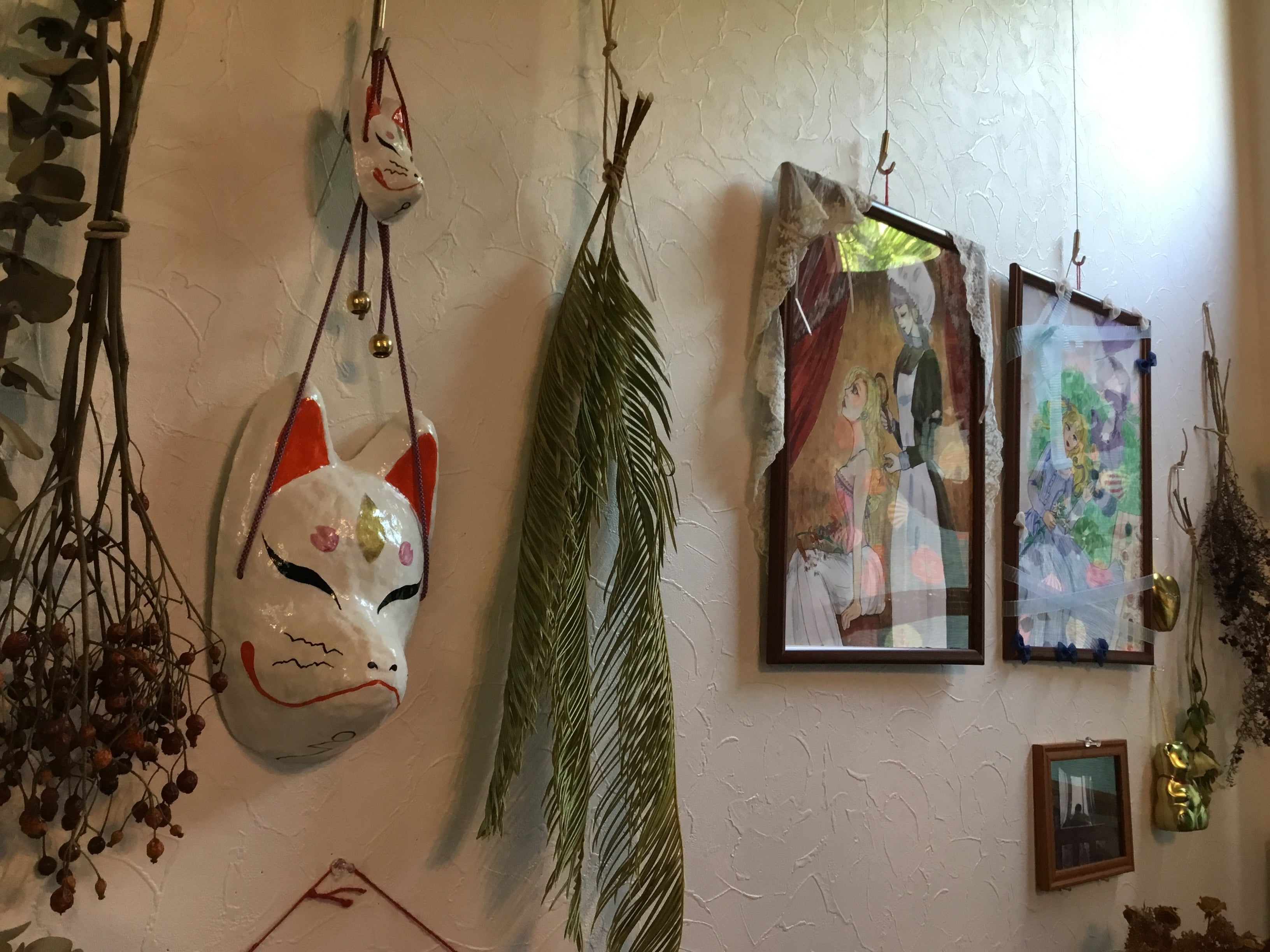 現在は自分の描いた絵と、ドライフラワーなどを展示しておりますが、