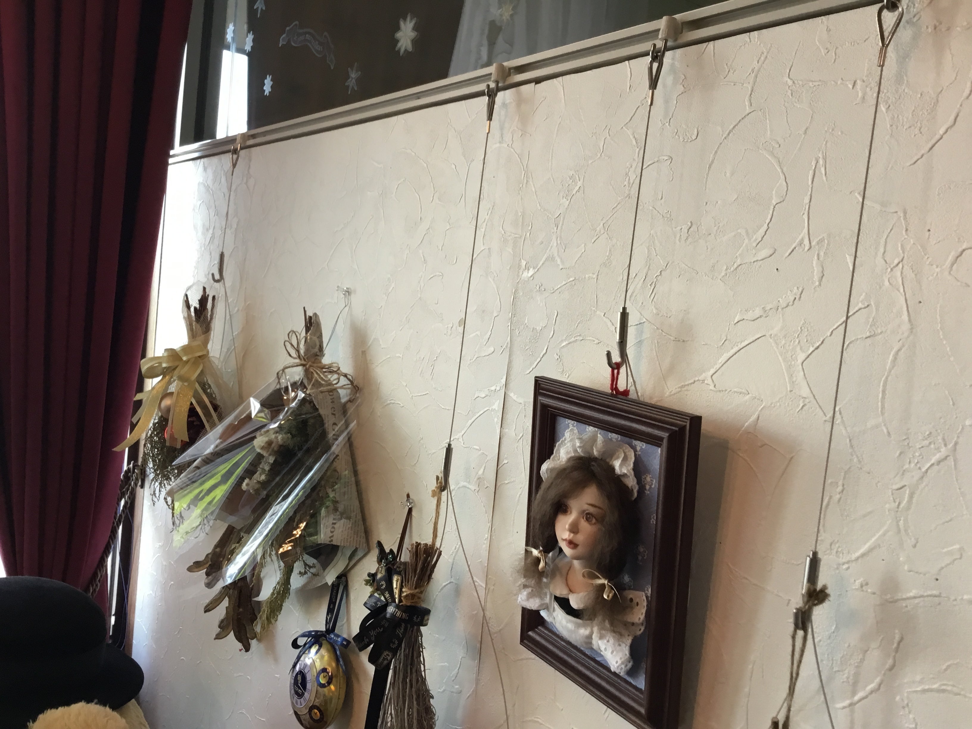 入り口のカーテンと、ピクチャーレールを設置していただきましたので