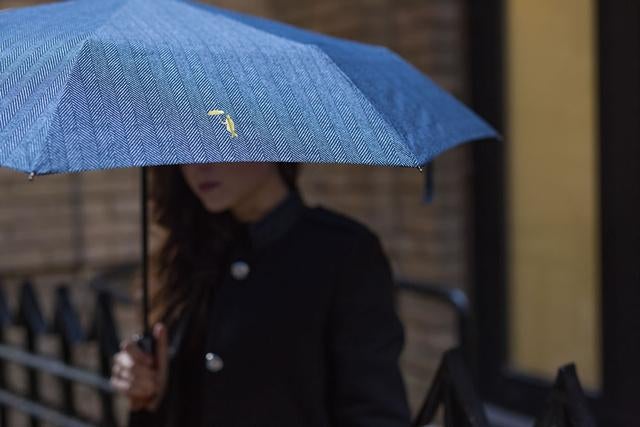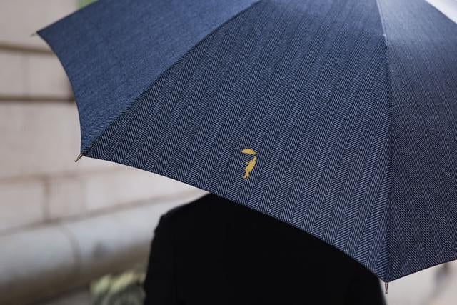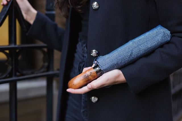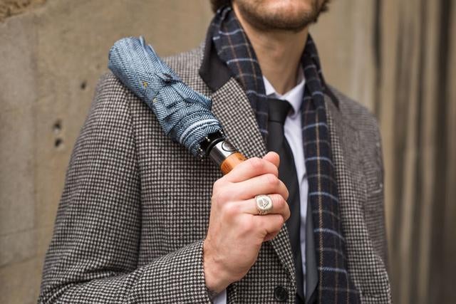 雨空に映えるワンポイント(ヘリンボーン柄のみ)。