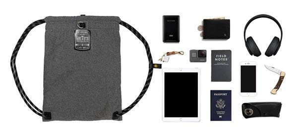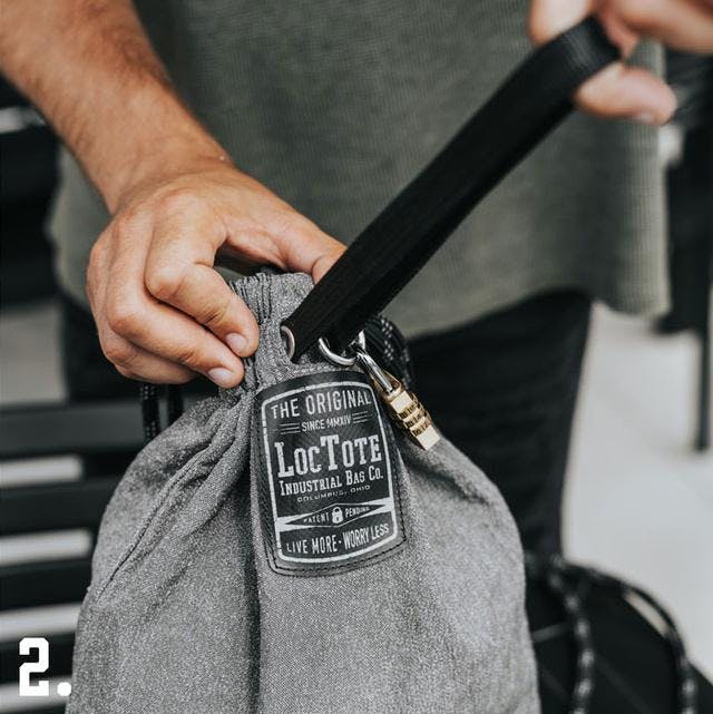 貴重品を入れたFlak Sack SPORTを、固定物にくくりつけロックをします。それだけであなたは荷物の心配から開放されます!