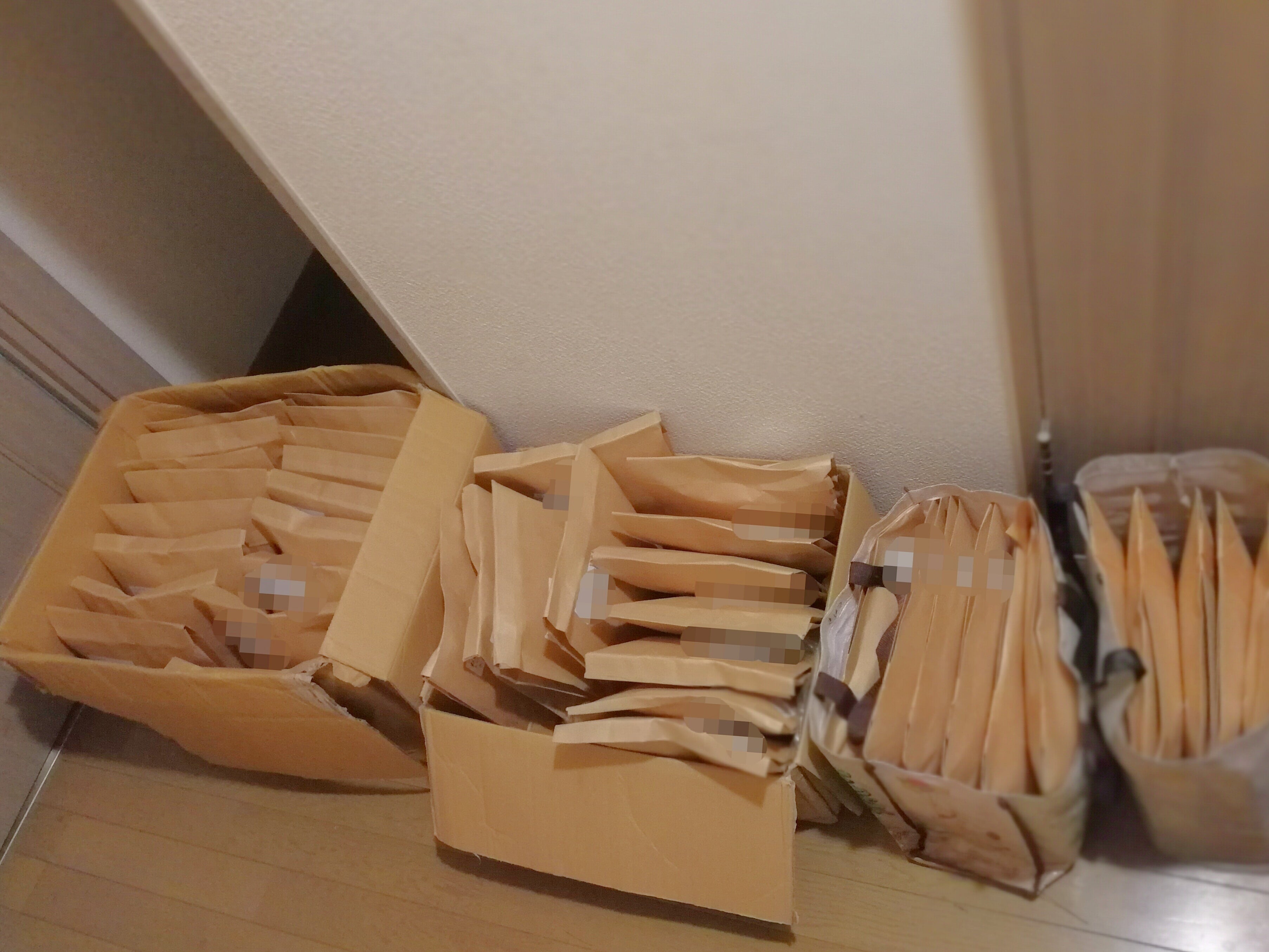 郵便局の窓口から定形外で発送する兼ね合いで、私が平日仕事休みのタイミングで3~4回に分けて発送手配をします。