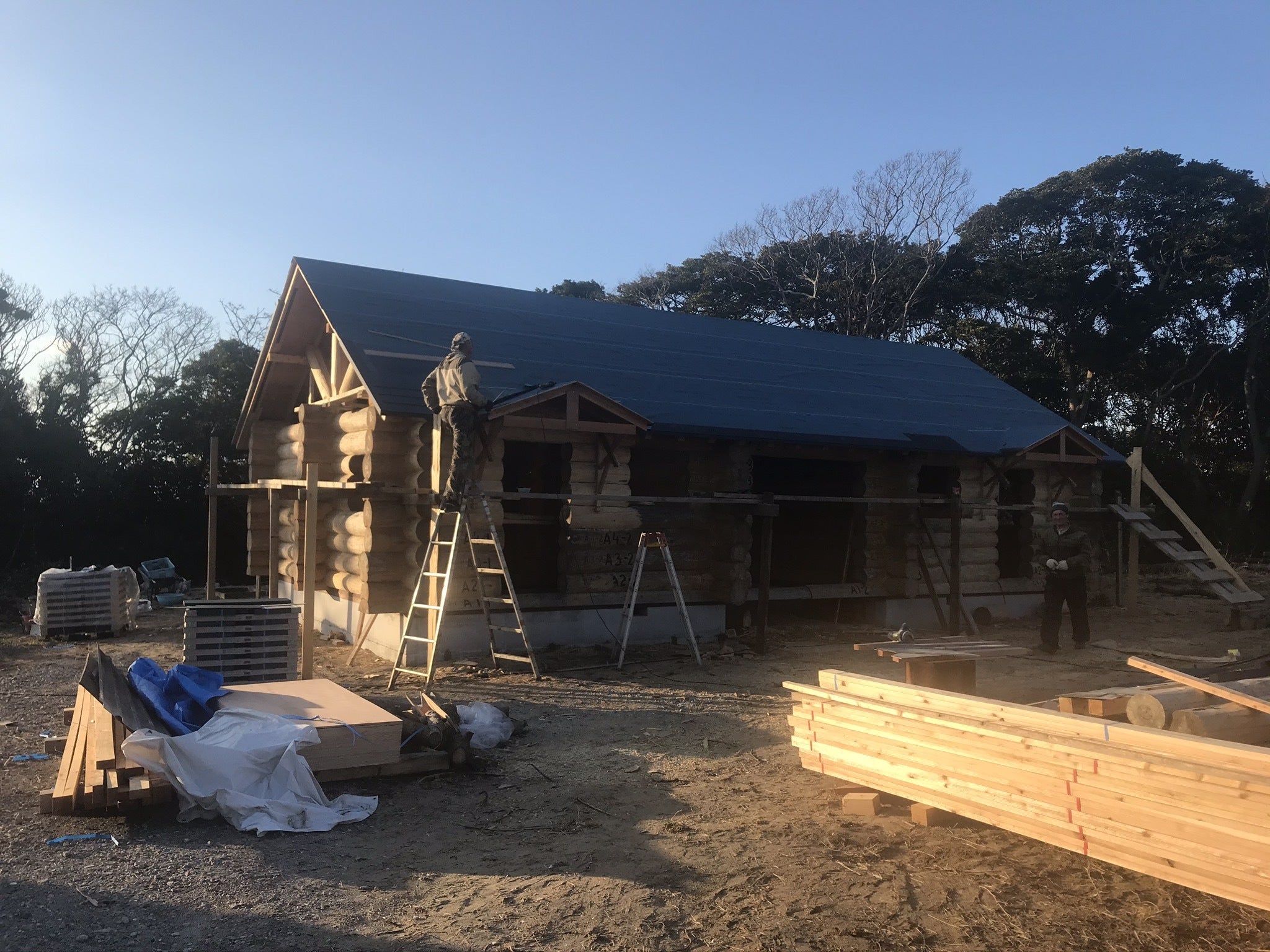 イズバ現地では、3人のロシア人職人の手で着々とサウナの建設が進んでいます。