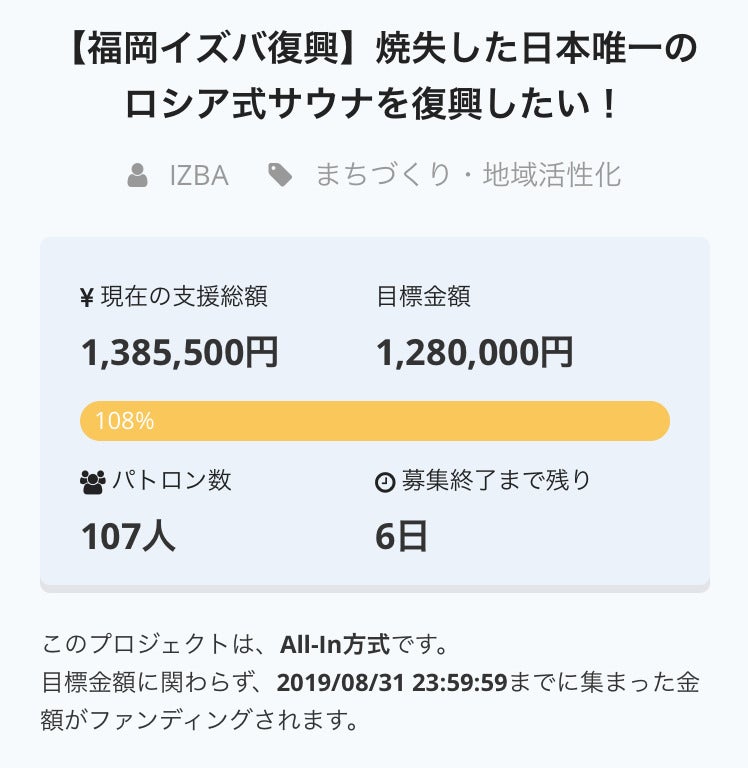 また、8月25日 23時現在、¥1,385,000という、多数の ご支援をいただいています。