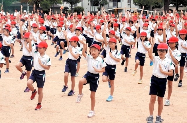 見様見真似で体操をする児童たち。体操が終わる頃には「もう一回したい!」と児童たちからアンコール!