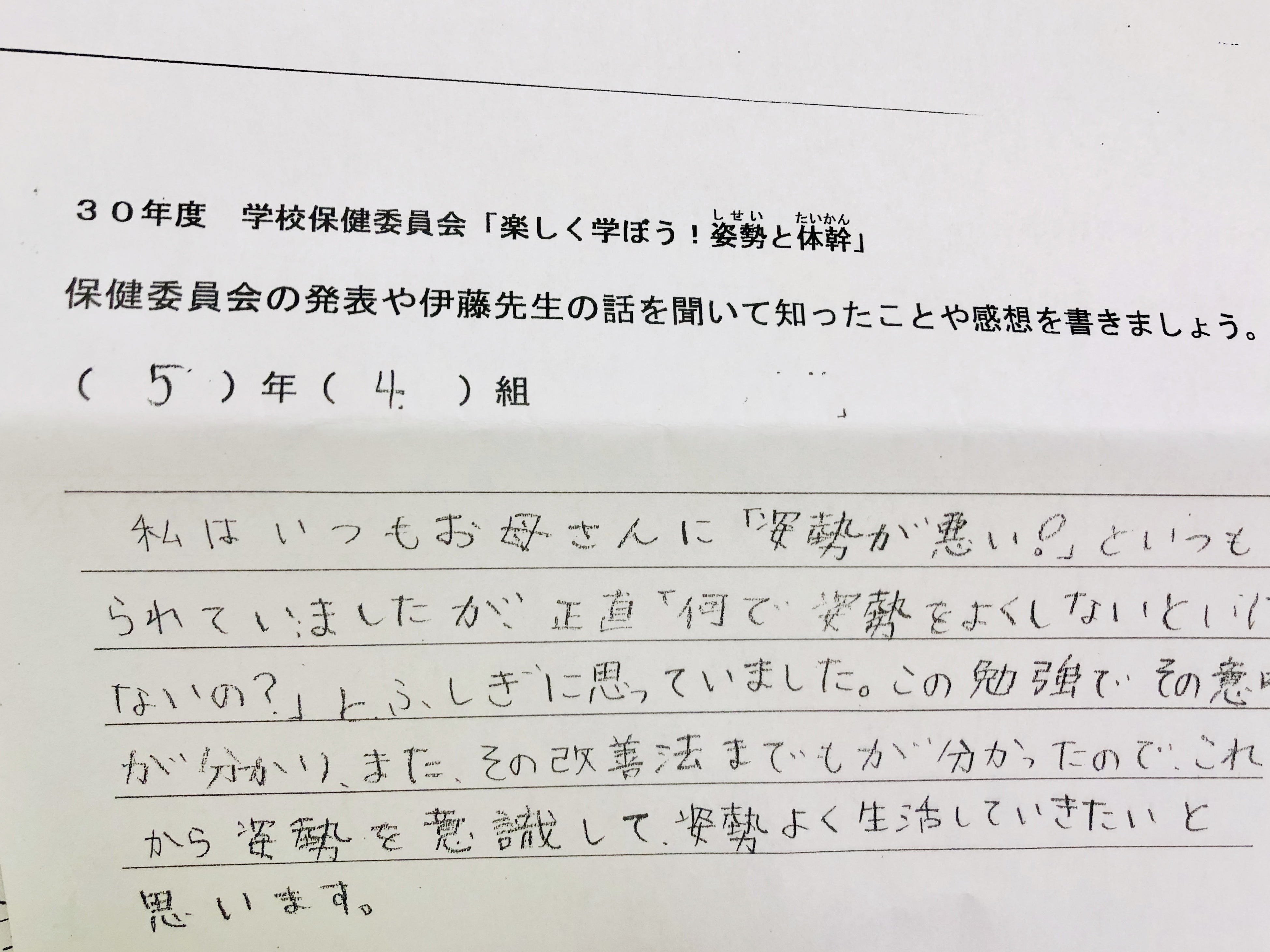 何度も足を運び、出来るだけ多くの視点からヒントを得ようと他の多分野の専門家達にも相談したり、時には児童にもインタビューし、心とカラダの姿勢を整える講演だから姿勢講演。回を重ねる毎に児童の姿勢に対する意識が変わっていく声が集まりました。