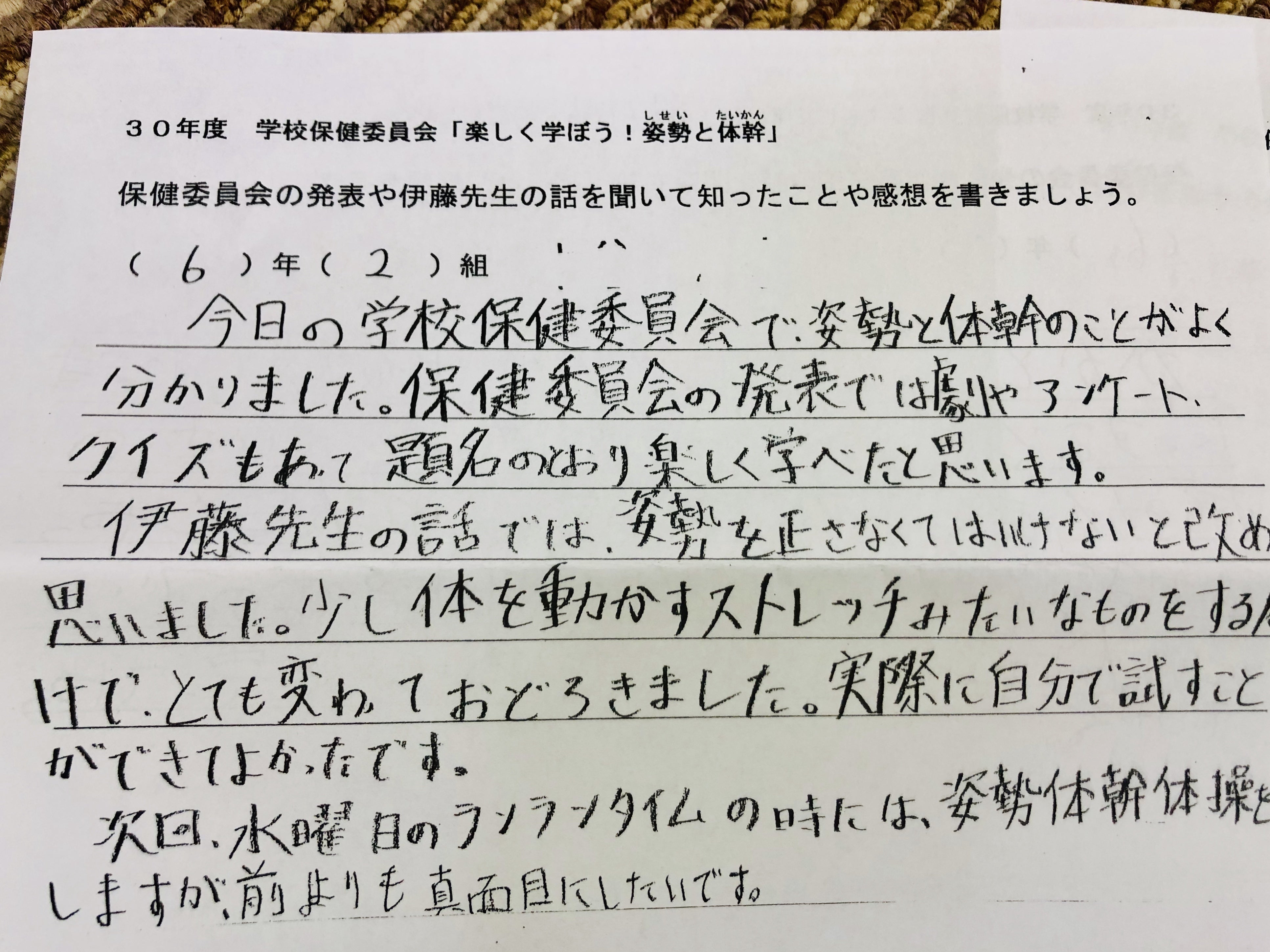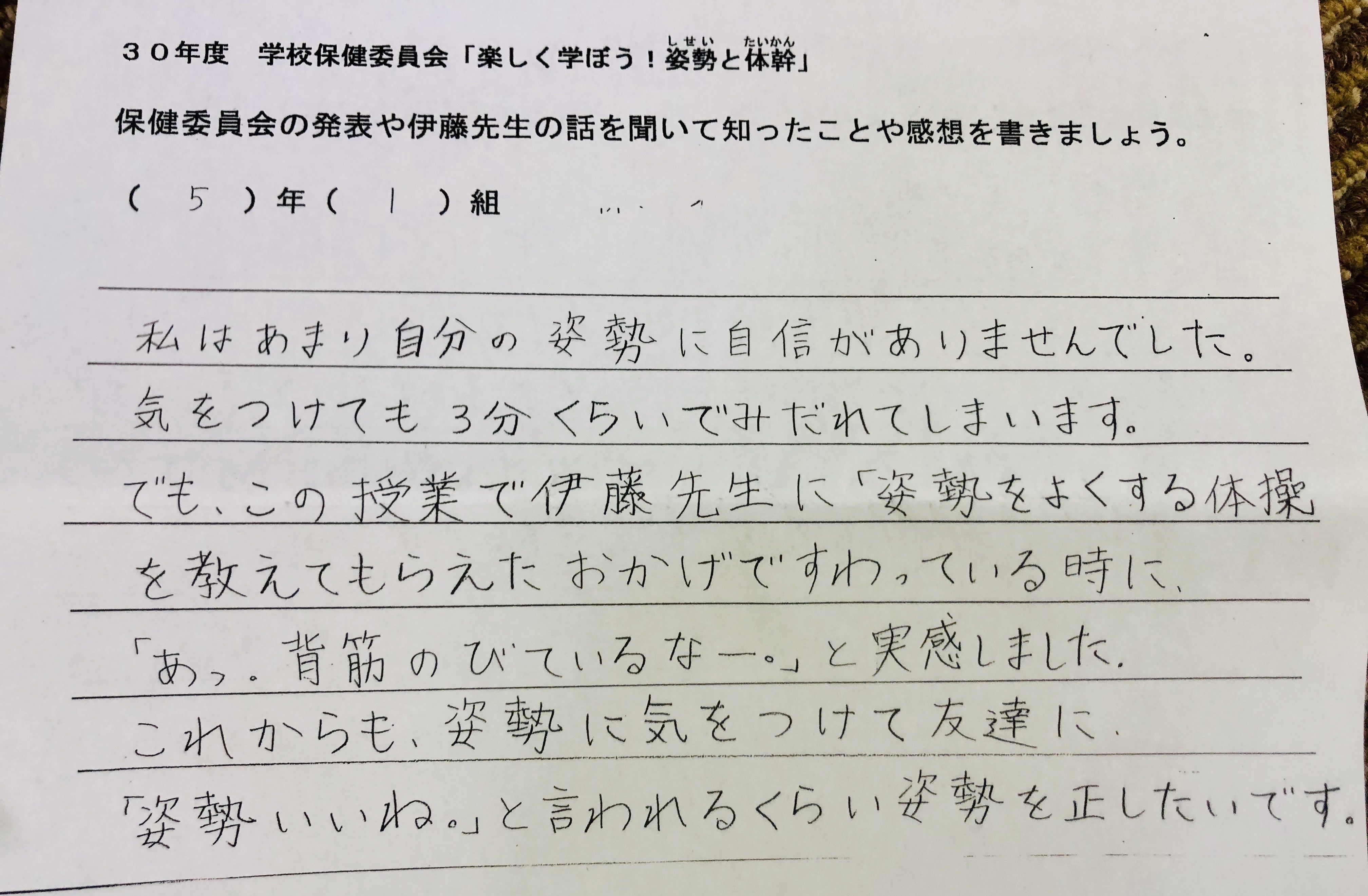 何度も足を運び、出来るだけ多くの視点からヒントを得ようと他の多分野の専門家達にも相談したり、時には児童にもインタビューし、心とカラダの姿勢を整える講演だから姿勢講演。回を重ねる毎に児童の姿勢に対する意識が変わっていく声が集まりました。