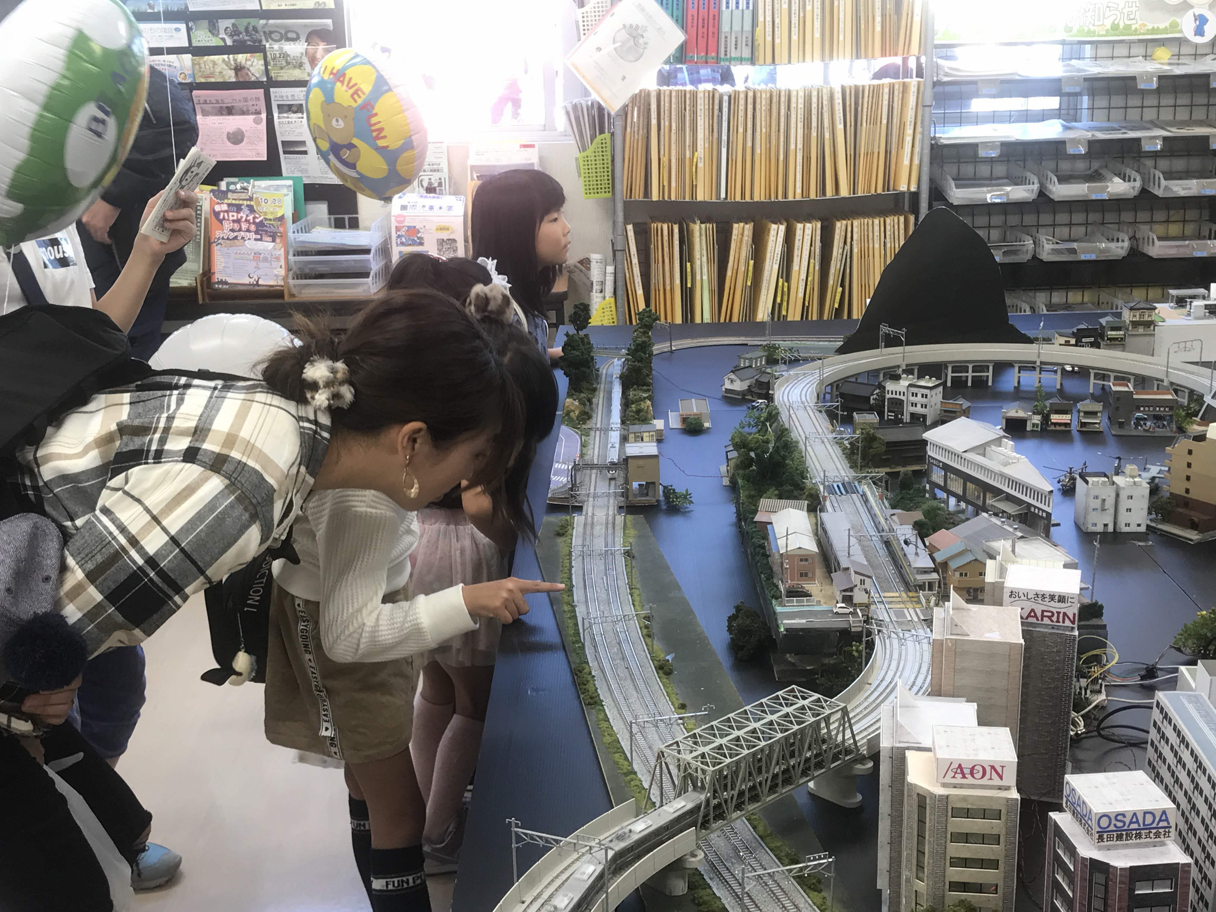 運転制御区域から見た来場者の様子。みんな我々の模型に釘付けです。