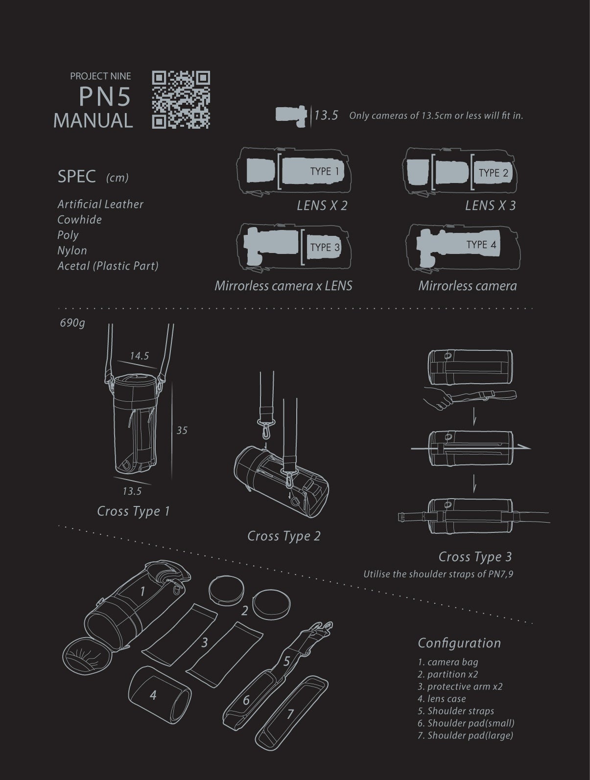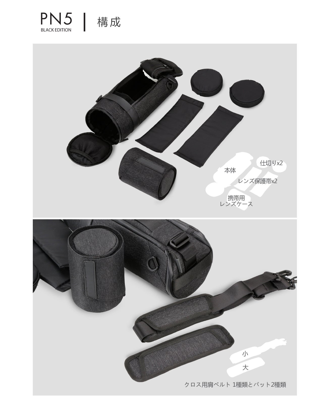PN5 : 従来はなかった新しい概念のマルチカメラバックで、カメラレンズがマウントされた状態でカメラを入れられるように円筒形でデザインされています。