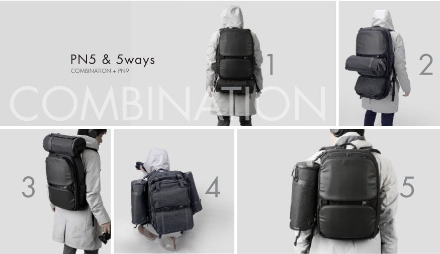 PN7:自転車用バッグからバックパックまで7種のバッグとして使用でき、ユーザーの使用シチュエーションに応じて変身します。