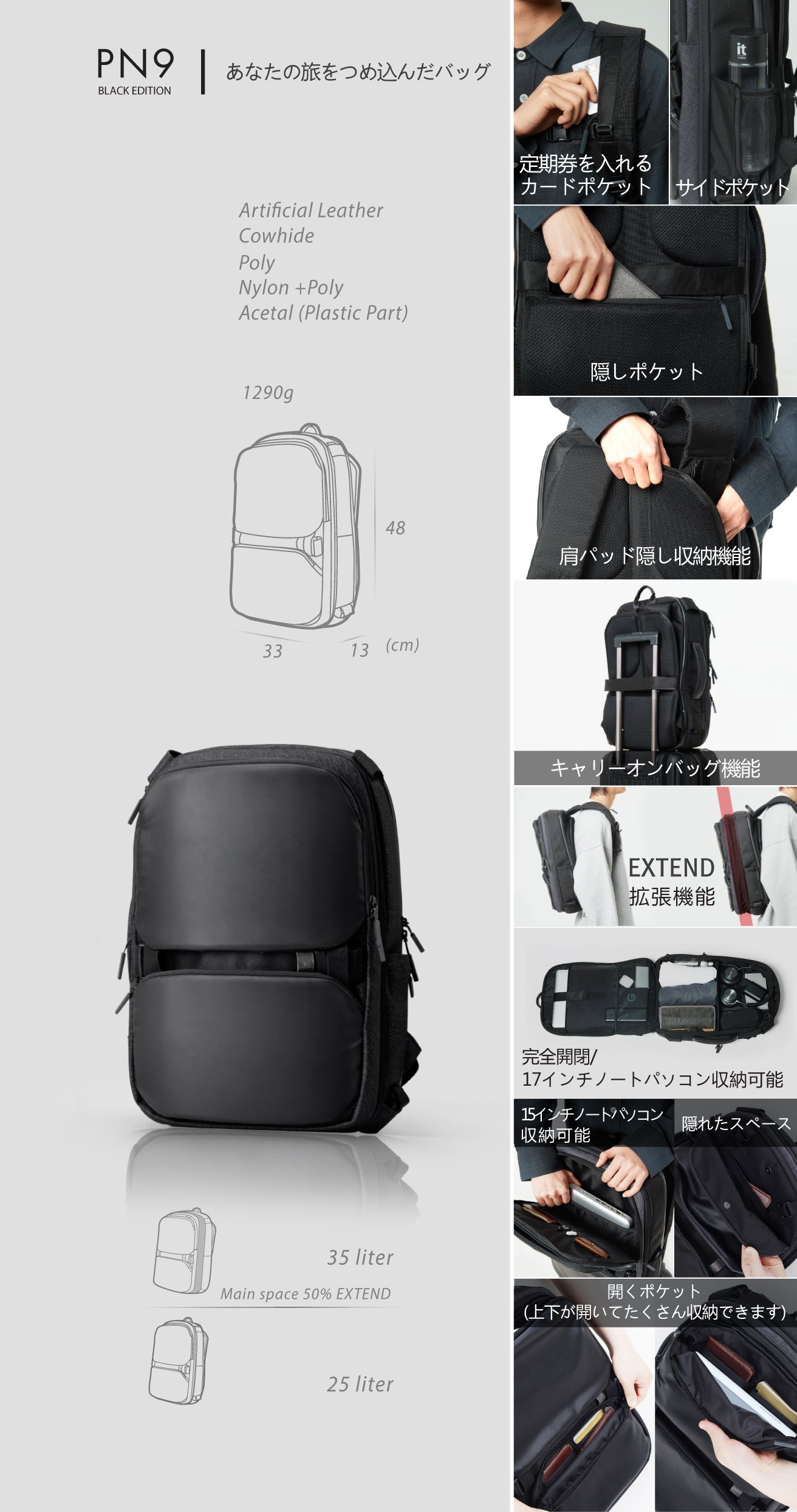 PN9 普段使いから長期旅行まで、様々な用途で使えるマルチバックパック