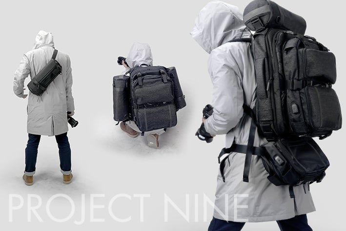 「PROJECT NINE」は、ユーザーが日常や旅行で必要とするバッグを研究分析し、最適化されたバッグを作るプロジェクトです。デイリーバッグ、マルチバックパック、カメラバックに加え、多様なモジュールで構成されたバッグは、いまだ経験したことのない新しさを提供します。
