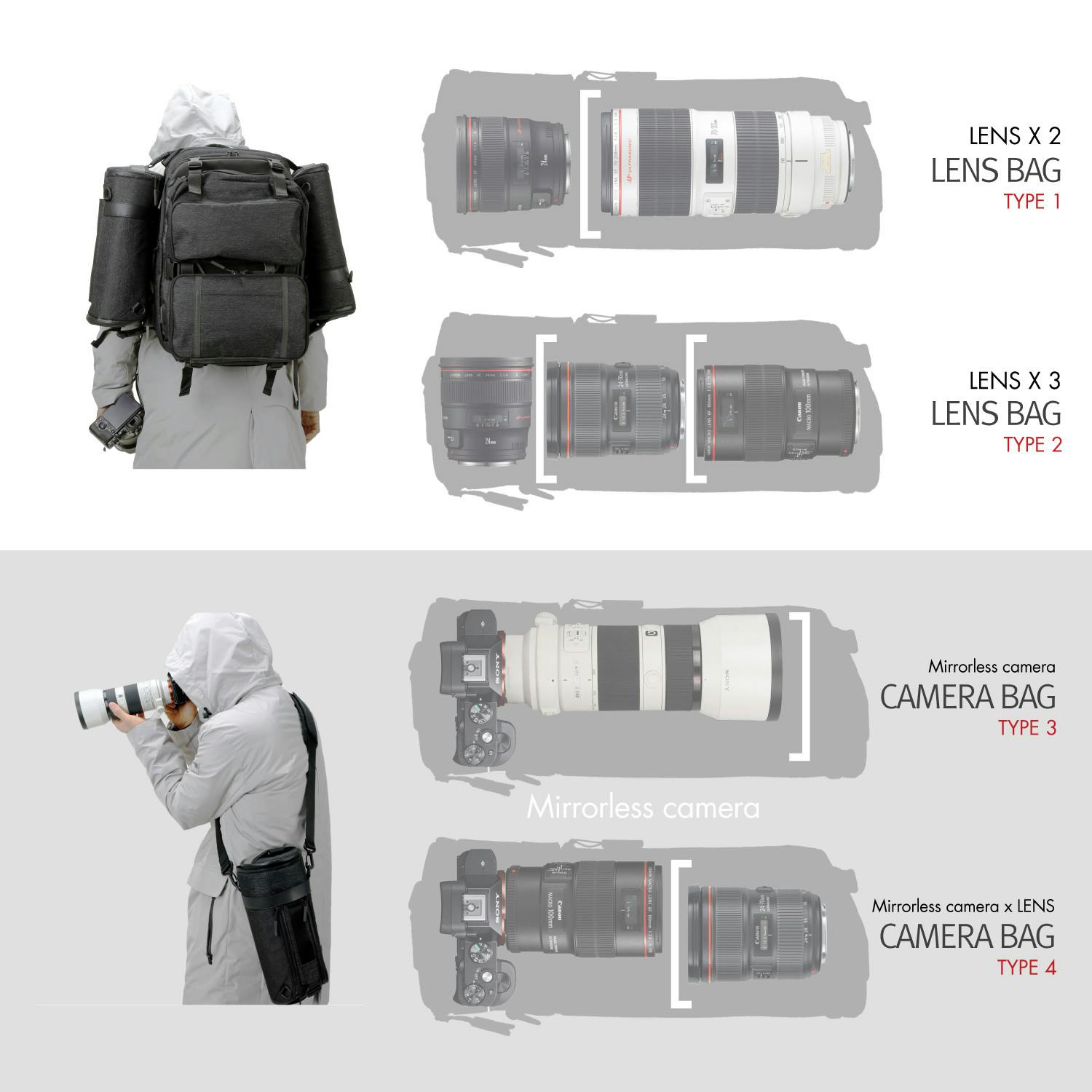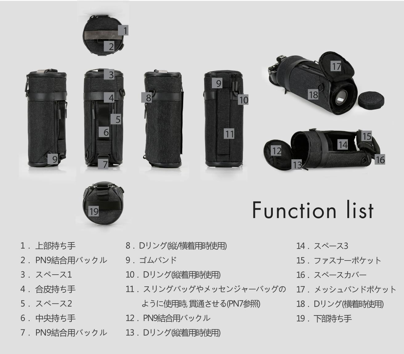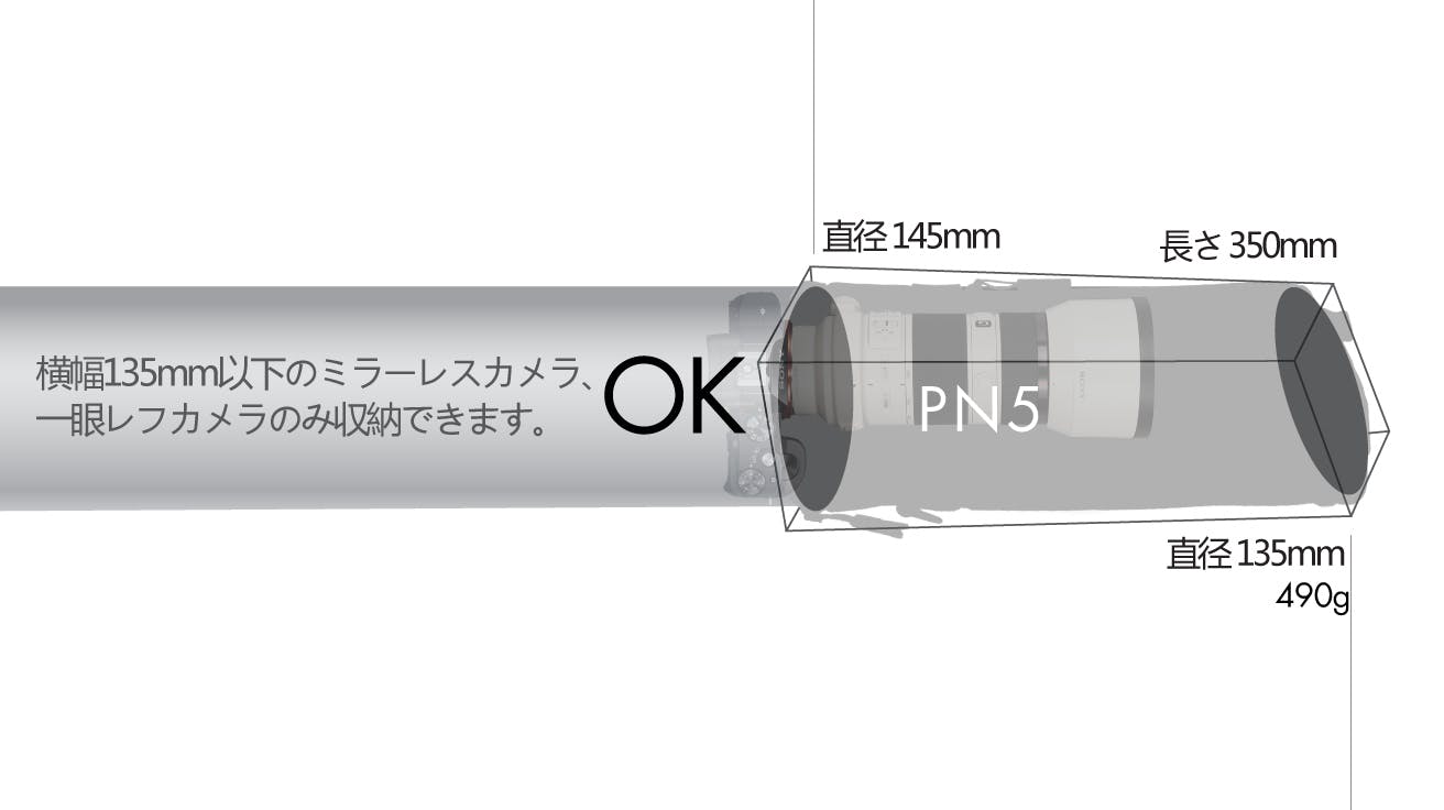 PN5 : 従来はなかった新しい概念のマルチカメラバックで、カメラレンズがマウントされた状態でカメラを入れられるように円筒形でデザインされています。