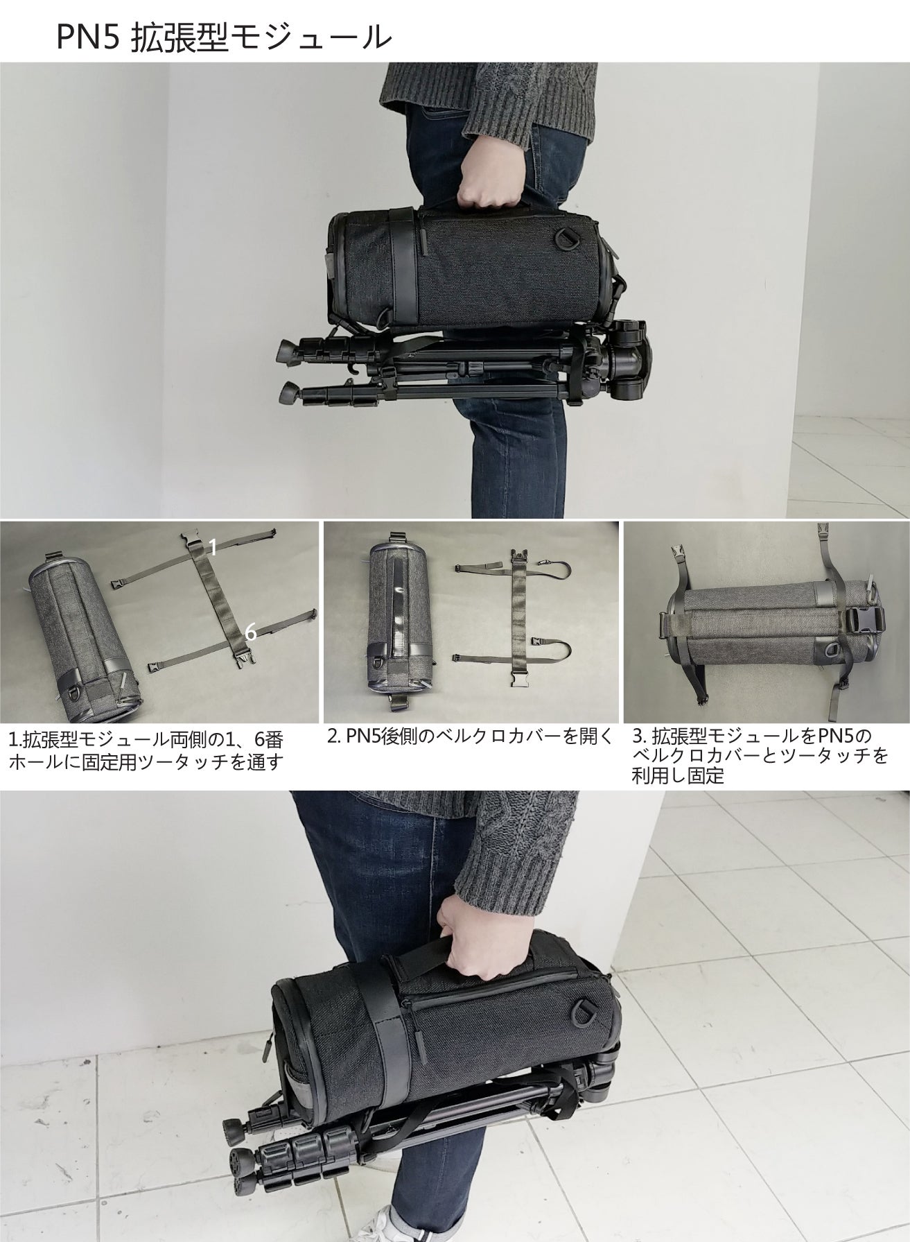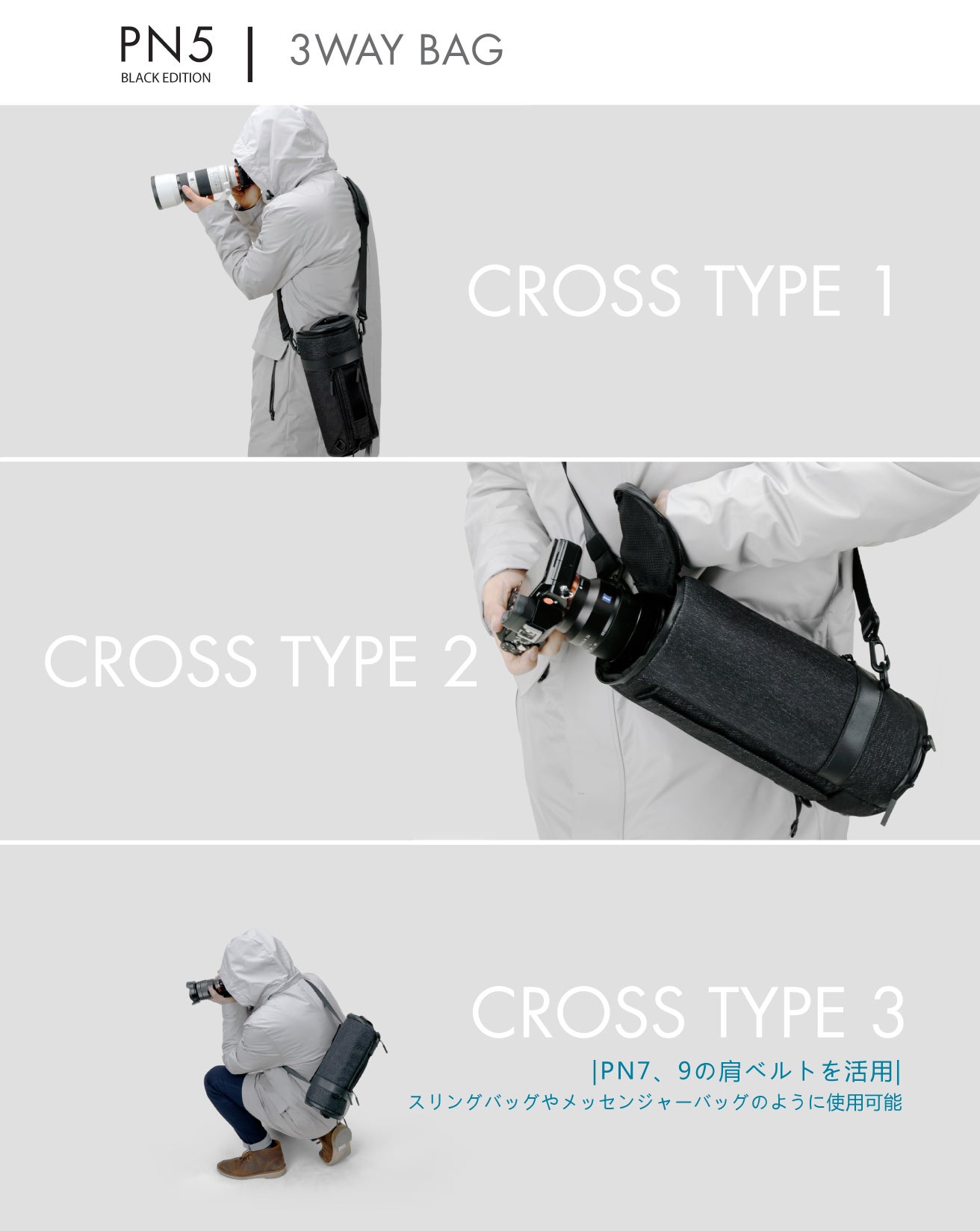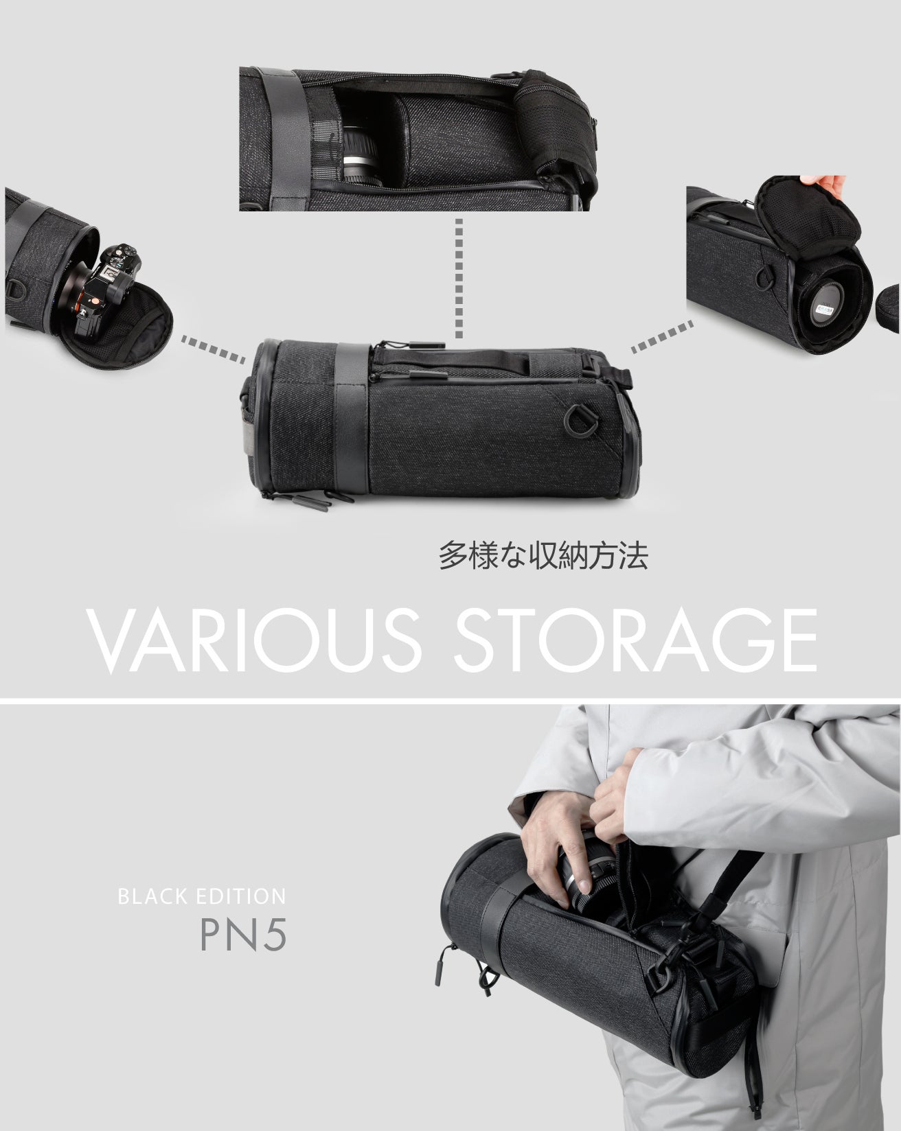 PN5 : 従来はなかった新しい概念のマルチカメラバックで、カメラレンズがマウントされた状態でカメラを入れられるように円筒形でデザインされています。