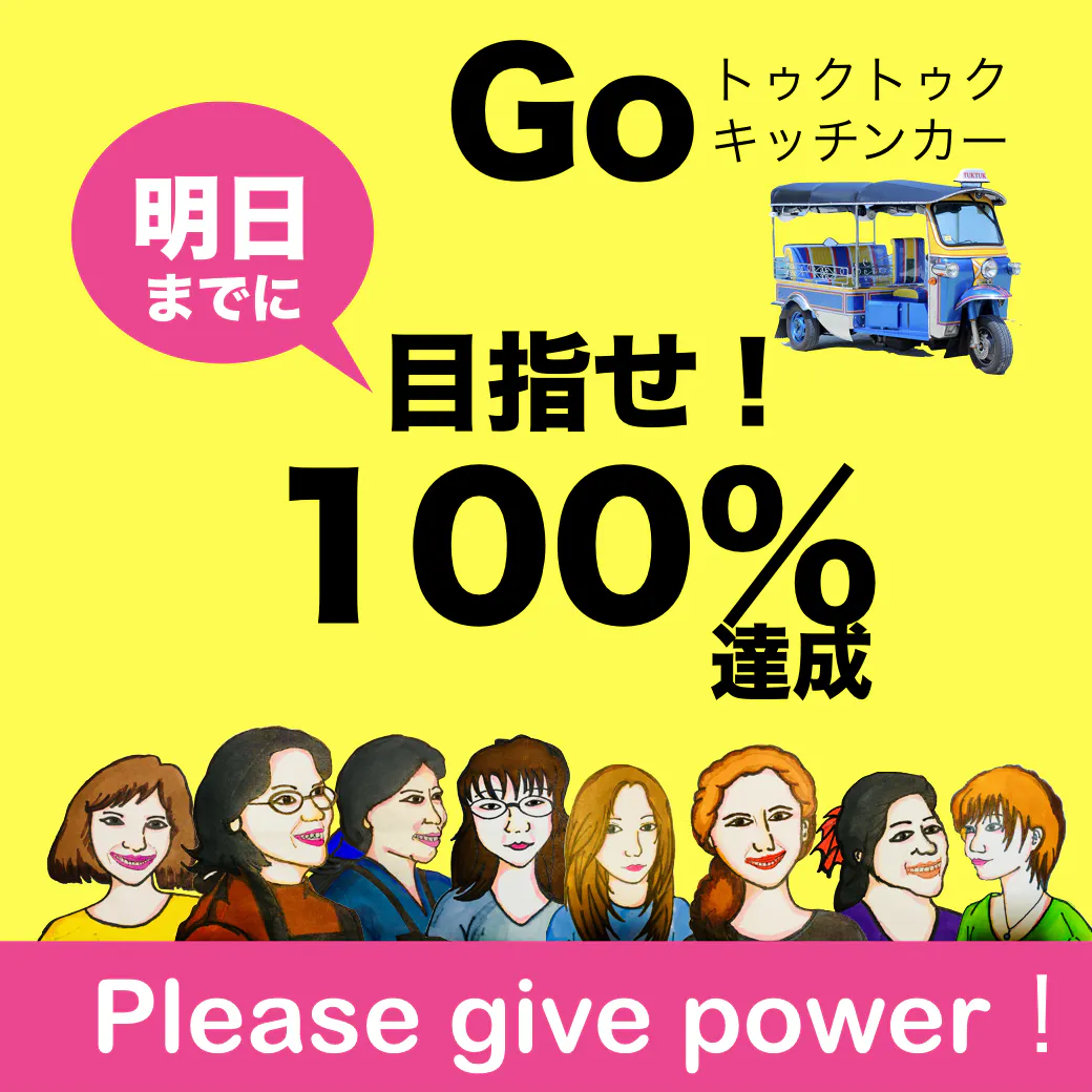 明日までに100%を達成、次なるステップであるトゥクトゥク屋台を目指させていただきたいと思います!